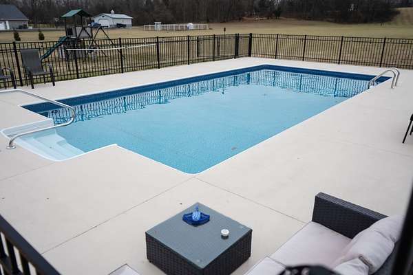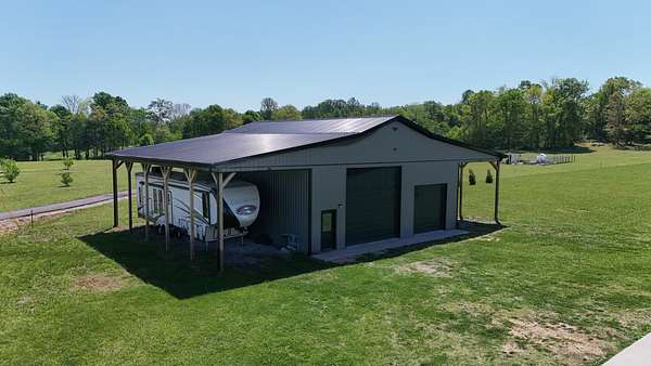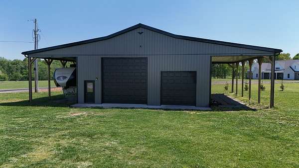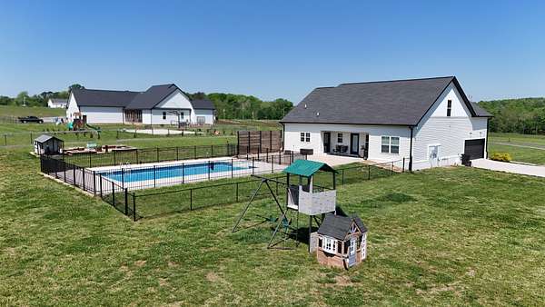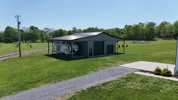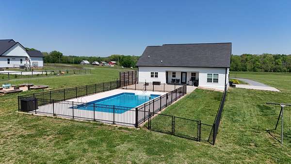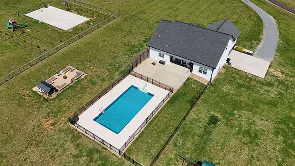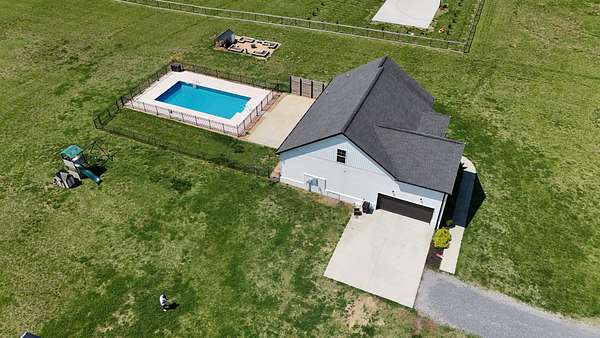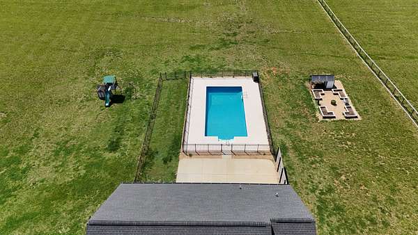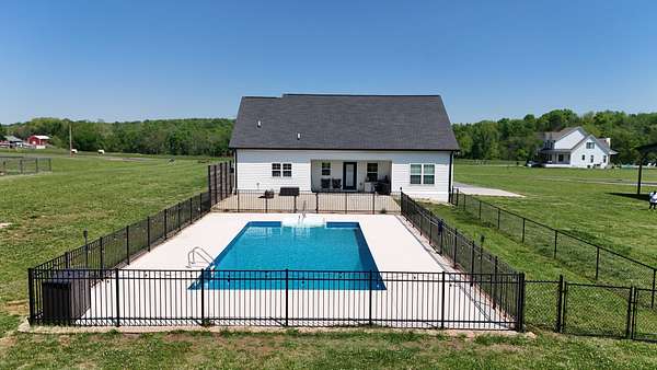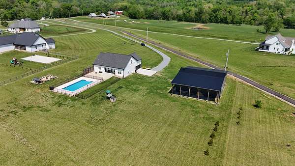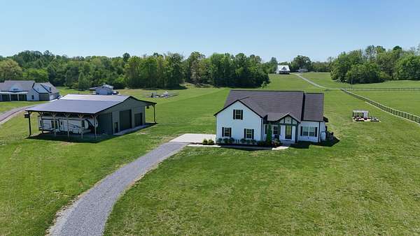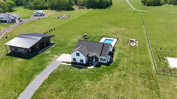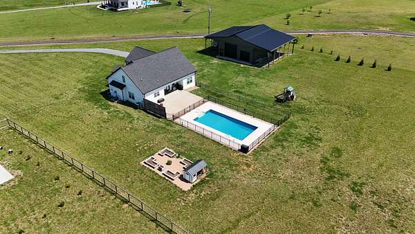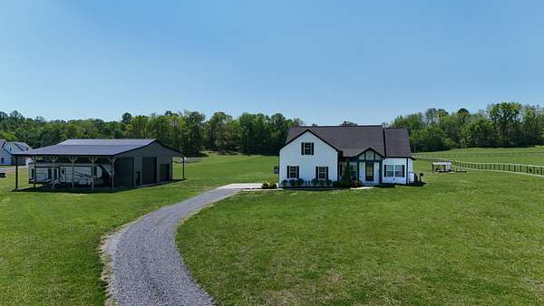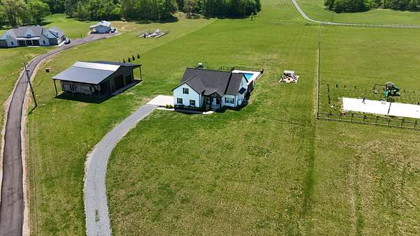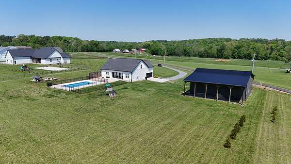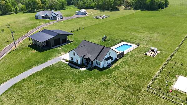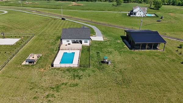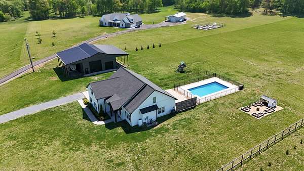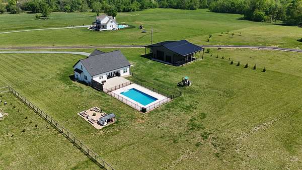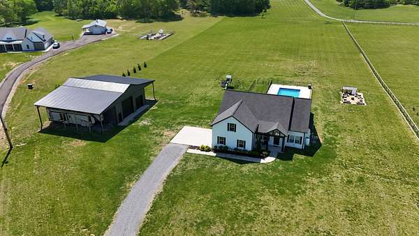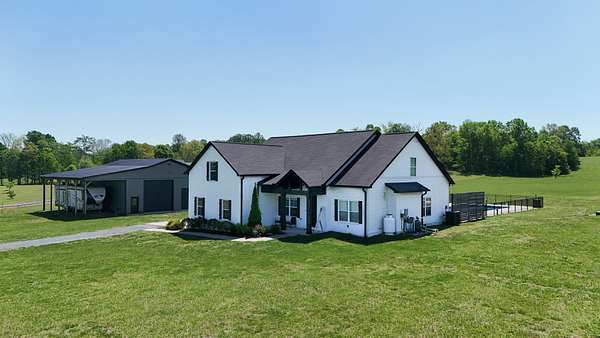Tucked away on a flat 5-acre lot just off the road, this beautiful property offers the perfect blend of peaceful country living and convenient access to town. Designed for both comfort and entertaining, the home features a modern open floor plan with stunning exposed beams throughout the main level, creating a warm and inviting atmosphere. Step outside to enjoy an in-ground pool and a spacious back patio—ideal for hosting gatherings, summer barbecues, or relaxing evenings outdoors. The property also includes a new Amish-built 40x50 workshop with two 16-foot lean-tos, providing ample space for equipment, hobbies, or storage.