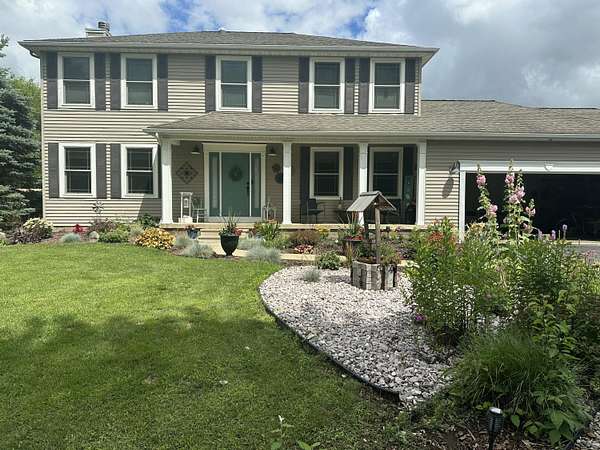 Western Schools. Nicely updated colonial on 1.80 acres offering 4-5 bedrooms and 2.5 baths. Spacious kitchen with large island and eat-in area, beautiful cabinetry, formal dining area, walk-in pantry with mudroom. Open-concept living with a fireplace enjoyed from multiple rooms. Roomy primary suite includes two closets and a thoughtfully designed bath with double sinks and vanity. Main-level office/den or optional 5th bedroom. Partially finished basement offers abundant storage (and throughout the home) and add your finishing touches for additional living space. New hot water heater. Expanded 3-car garage plus shed. Private backyard features a large patio, pool, firepit, garden and scenic tree-line views surrounding the home.