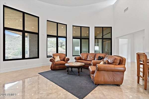 Five private acres in the foothills of Cave Creek offering exceptional space, privacy, and expansive desert views. This newly built 4 bed, 3.5 bath home is livable today with a Certificate of Occupancy in place, while offering meaningful opportunities for the next owner to bring their vision to life. A flexible layout features a split primary suite along with a separate one-bedroom basement unit for guests, extended family, office, or wellness use. The five-acre setting offers potential for horses or a custom desert retreat and provides a quiet, open environment with mountain and hillside views just minutes from town. A rare opportunity to step into a livable home while shaping the remaining elements and land to reflect your lifestyle and long-term vision. Day-to-day, the setting is defined by stillness and open space, with minimal activity beyond natural desert sounds such as wind and birds. Neighboring homes are visible at a distance, with large parcels throughout the area creating privacy through space rather than fencing. Access to town is approximately ten minutes via a combination of paved and dirt roads, offering a quiet foothills environment while remaining conveniently close to the dining, shopping, and community of Cave Creek. The property is served by electric, a shared well, and a newly installed septic system. The land is primarily natural desert with a mix of gentle slopes and surrounding hillside. The immediate homesite and driveway area are relatively flat, and portions of the property may lend themselves to future outdoor living areas or site improvements, subject to buyer verification. There is no notable road noise, and vehicle traffic in the area is minimal, reinforcing the quiet, open character of the setting. The home is livable today with a Certificate of Occupancy in place and is being offered as-is. Certain aspects of the home and property remain ready for completion or refinement, providing flexibility for a buyer who values land, privacy, and the opportunity to shape remaining elements over time.