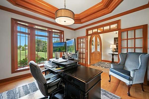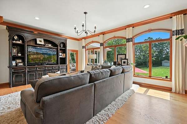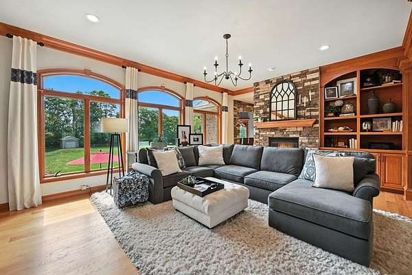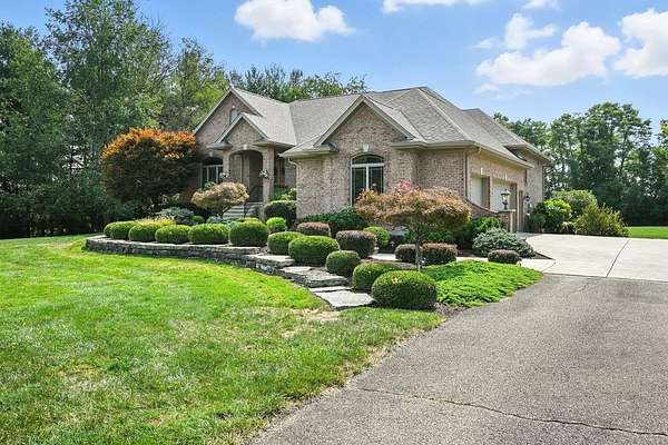 Experience the perfect blend of luxury, privacy, and space in this exceptional custom brick ranch, nestled on a secluded three-acre, level lot. Crafted for both style and comfort, the home showcases warm natural woodwork and expansive windows that fill every room with light. The gourmet kitchen seamlessly connects to a cozy hearth room with fireplace and a sunlit breakfast nookan inviting space for everyday living or effortless entertaining. The finished walkout lower level features a generous family room with built-ins, ideal for movie nights, hobbies, or flexible multi-generational living. Step onto the covered composite deck and unwind while overlooking your peaceful, private yarda true retreat from the bustle of daily life. With countless upgrades and thoughtful design throughout, this remarkable property offers a rare opportunity to own a high-end home in an idyllic, tranquil setting.