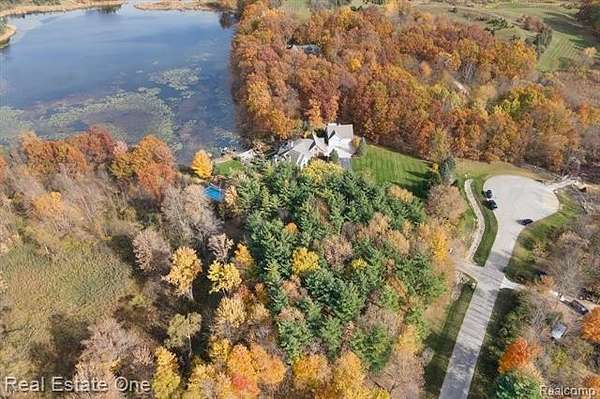 Step into a world of refined lakefront living with this extraordinary 14-acre Country French estate--a true sanctuary of luxury, seclusion, and unforgettable memories. Tucked behind a private gated drive with a freshly sealed driveway, this custom brick-and-stone masterpiece offers over 7,000 square feet of exquisite craftsmanship designed for both relaxation and grand entertaining. Inside, discover a chef's dream kitchen featuring granite countertops, Brazilian cherry floors, a wet bar, 3 Thermador ovens, and a 6-burner stove. The main-floor primary suite is pure indulgence with heated floors, a hydro jet tub, and a custom walk-in closet. The two-story hearth room stuns with a dual-sided fireplace and flows into a four-season sunroom offering panoramic lake views and heated floors. A dedicated home office with a fireplace and private entrance makes working from home serene and seamless. The finished walkout lower level is built for entertaining--complete with a full bar, home theater, game room, cedar sauna, and 1.5 baths with a 6th non-conf BR ready to finish. Outdoors, enjoy your private paradise: a heated saltwater pool and spa with a cabana, a lakeside gazebo with a custom stone fireplace, electricity, bar fridge, and plenty of storage for outdoor entertaining. The kids' imagination will take them anywhere in their storybook cedar loft playhouse, complete with electricity, a fireplace, and an intercom system. Your private lake is ideal for swimming, fishing, and kayaking. A whole-house generator adds peace of mind, while an additional heated detached garage offers flexible storage or workshop space with a loft. Whether you're seeking a year-round retreat, multigenerational homestead, or a luxury family compound, this rare estate has it all--privacy, elegance, and adventure, all on one pristine waterfront setting. Now including the 8.81 adjoining acres.