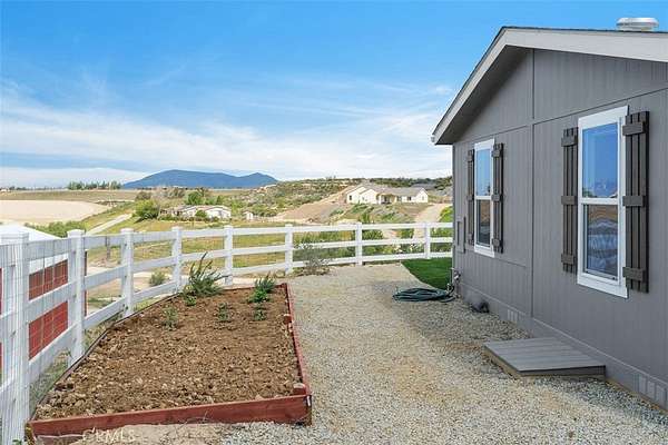 This recently installed, never-lived-in home sits perched on a scenic hilltop in the heart of Temecula's renowned wine country, offering breathtaking, endless views of South Coast Winery, sprawling vineyards, and rolling hills. Ideally located just around the corner from the Anza Road roundabout, it provides convenient central access to premier wineries while remaining minutes from town. The residence features a spacious open floor plan with four bedrooms, two bathrooms, thoughtful upgrades, and an oversized two-car garage. The expansive 2.13-acre lot includes a large flat area below with additional easement access—perfect for an outbuilding, horse facilities, or future expansions—along with mature pine trees and plenty of room for toys, animals, or personal projects. Enjoy peaceful mornings or entertaining on the front patio, surrounded by vinyl fencing, where you can watch hot air balloons gracefully rise over the valley. This rare, versatile property seamlessly combines immediate comfort, incredible potential, and prime proximity to all that Temecula has to offer.