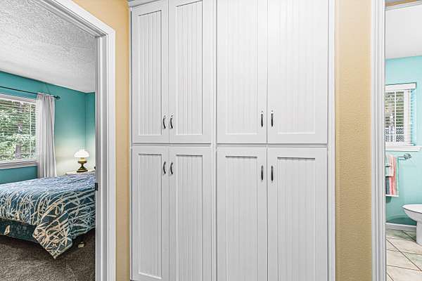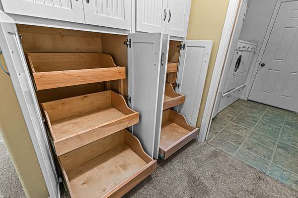 - Built-In Features, Double Vanity, Enclosed Toilet(s), Granite Counters, In-Law Floorplan, Kitchen Island, Linen Closet, Open Floorplan, Pantry, Primary Downstairs, Shower/Tub Combo, Stone Counters, Vaulted Ceiling(s), Walk-In Closet(s)