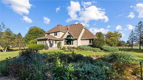 This spectacular estate has never been offered for sale before! The expansive custom home has it all, hardwood flooring throughout the main and upper level, vaulted ceilings, 2 sided oversized brick fireplace in the great room and dinning room. Beautiful 4 season porch right off the large custom kitchen. The primary bedroom is nicely equipped with an en-suite bath that has a Pearl jet/soaking tub, walk in tile shower with large walk in closet. Main floor laundry and so much more. The almost 6 acres is all set with a beautiful 30X36 barn that has been used for goats and is still home to chickens. The property has very tasteful, professionally designed landscaping with flowers galore! The gardens and apple trees as very impressive, with the most delicious apples I have ever had! Right behind this property is very nice DNR land with the Grindstone River running through it, full of wildlife. Amazing location, actually in the Hinckley City limits, the Hinckley Knights baseball stadium is only a 1/2 mile away and the Willard Munger State Trail is only a 1/4 mile away! This one has so much to offer, its a MUST SEE!!!