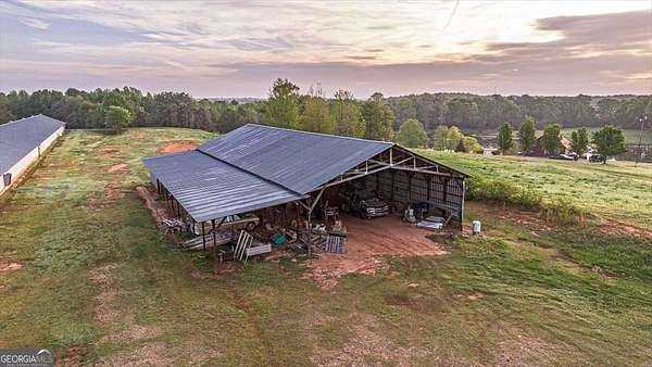 HIDDEN CREEK FARM CONSISTS OF 38.2+ ACRES, 2-BREEDER HOUSES, BEAUTIFUL 2006 PINE LOG CABIN WITH 1860+SQ FT ON BASEMENT, LAKE AND CLOSE TO DOWNTOWN ROYSTON. This farm grows for Mar Jac Poultry in Gainesville, GA. The farm is currently on Mar Jacs top contract paying $0.65 per dozen with potential gross income of $200K+ a year. Both breeder houses were built in 2001 and are 40x530 in size. There are also 1 pole barn on the property / measures 53x100 with an 18ft lean-to. More information available on the equipment and features. The log cabin features all pine interior, 1 bedroom, 1 bath, kitchen (new walnut custom cabinetry)/living room and dining area all on the main with a 2 story stone fireplace and view to the staircase loft area, unfinished basement which leads to the patio area for grilling and entertaining...AND a fabulous view of the SUNRISE over the lake! OPTION to purchase more land for an additional cost. Option to purchase additional property.. Shown BY APPOINTMENT ONLY-RESTRICTED HOURS!