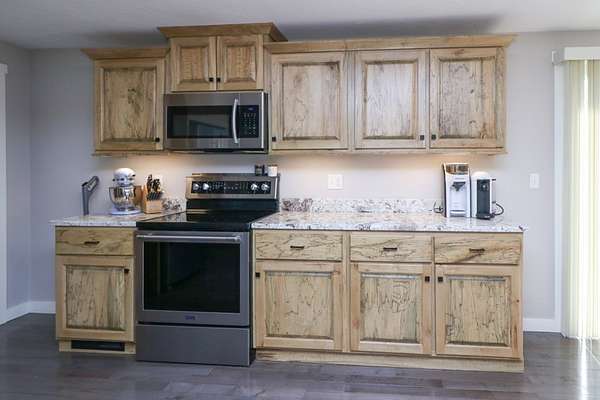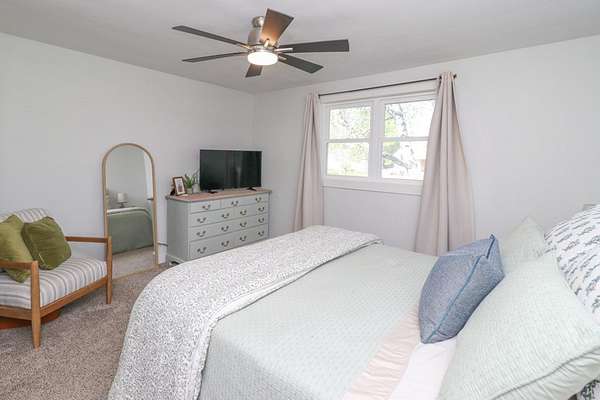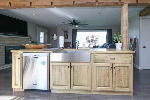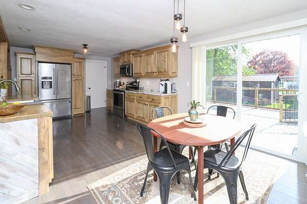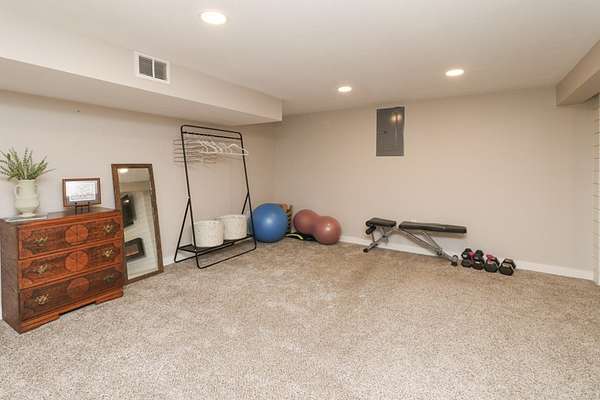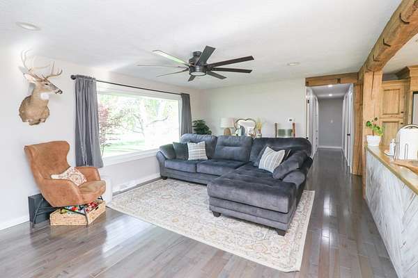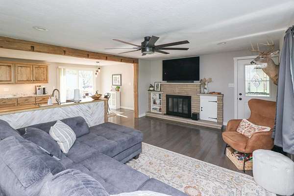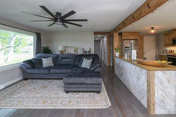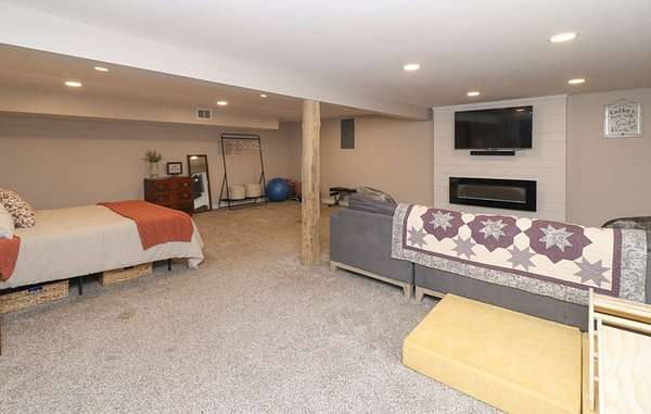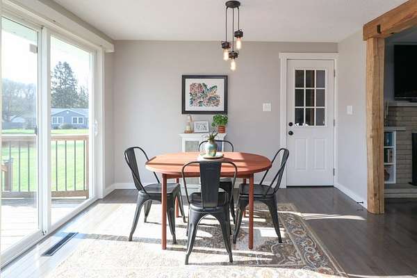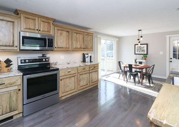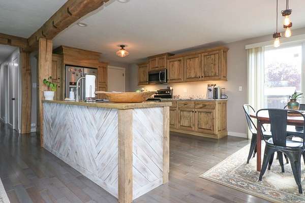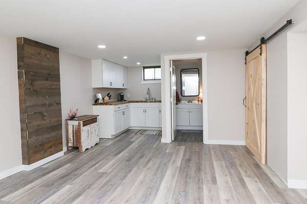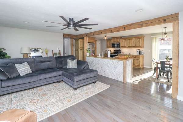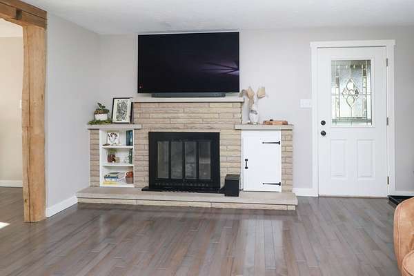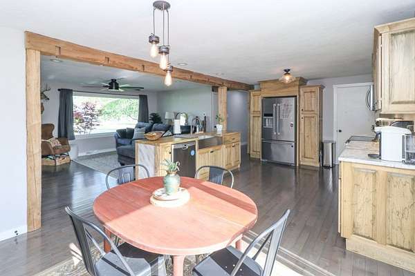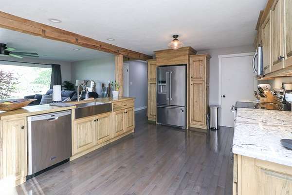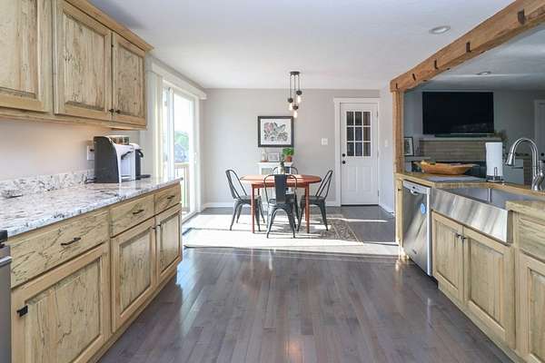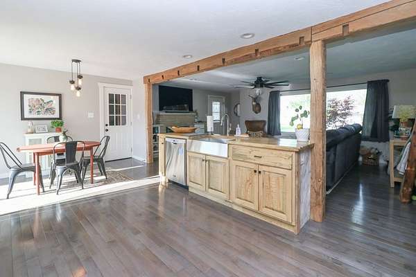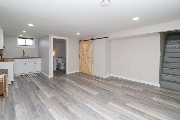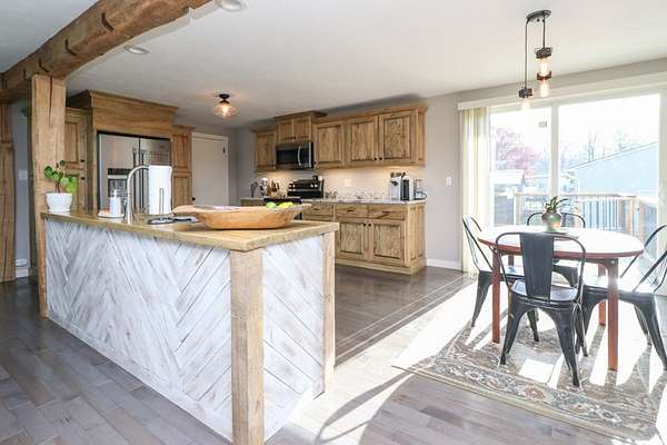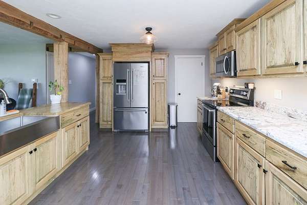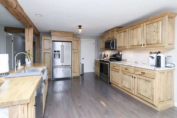Est $1,483/moBeautifully remodeled 3–4 bedroom, 2.5 bath ranch situated on over an acre and a half! This charming home features thoughtful design throughout, including a stunning kitchen with barn beam accents, real wood countertops, beautiful cabinetry, and gorgeous hardwood floors. The mostly finished basement offers even more living space with a kitchenette, full bath, rec room or possible 4th bedroom, electric fireplace, workshop bench area, and laundry. A must-see home with tons of character!