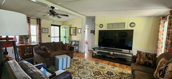 Discover peaceful country living with this well-maintained 3-bedroom, 2-bath mobile home on 1.5 acres in Chatsworth. The home offers a spacious open living room and a large primary bedroom with an en-suite bath featuring a soaking tub. A second bedroom is currently used as a walk-in closet/dressing room but easily converts back to a bedroom. The roomy kitchen provides ample counter space and cabinets for meal prep and storage. Enjoy relaxing on the huge screened-in front porch or on the covered back porch, and take advantage of the expansive, mostly level yard—perfect for gardening, play, or wildlife watching. Two newer storage buildings are included, and the owners are leaving the washer, dryer, lawn mower, and yard sweeper as an added bonus.