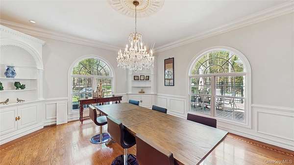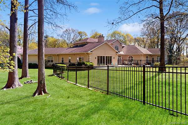 Tucked away on a serene private road just minutes from the storybook charm of Locust Valley, this Mediterranean-style Colonial is a true estate of distinction. Sited on 5+ pristine acres, seamlessly blends classic elegance with modern luxury. Designed with both grandeur and comfort in mind, the home features two gracious primary suites on the main level, a total of 6 spacious bedrooms, 5 full bathrooms, and one half bath. Soaring 10-foot ceilings enhance the sense of openness throughout, while rich oak hardwood floors provide warmth and sophistication in every room. The heart of the home is a massive chef's kitchen, thoughtfully appointed for both entertaining and everyday living. A timeless oak-paneled library offers a refined retreat for work or leisure. The layout is perfectly made for making entertaining a seamless, enjoyable experience. Recently renovated, upstairs bathrooms, along with brand new HVAC systems, and a newly constructed three-car garage, ensure turnkey ease and modern comfort. Full partially finished basement, with walkout to outside. "The Last of the Mohicans" on a highly desirable private road in Matinecock, this extraordinary property offers rare privacy and elegance in one of Long Island's most coveted enclaves. Close proximity to LIRR (train), renowned golf courses, and schools makes this a desired location. A truly unique offering that must be seen to be appreciated.