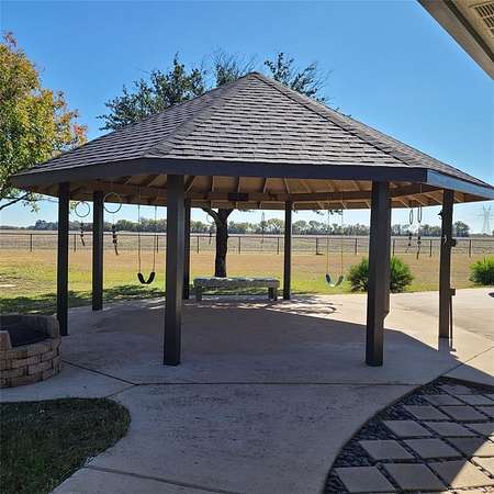 - Covered Patio/Porch, Fence, Fire Pit, Lighting, RV Hookup, RV/Boat Parking, Rain Gutters
