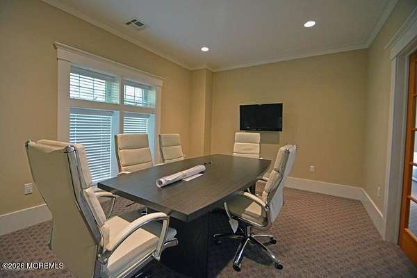 Beautifully designed office space available for lease, offering a functional and professional layout ideal for a variety of business uses. The space features two private offices, a spacious conference room, a welcoming reception area, and a dedicated print/copy room. A full kitchen provides added convenience for staff, along with separate men's and women's restrooms. The property also includes two oversized garages with 11-foot ceilings, perfect for storage, equipment, or specialty business needs. Ample on-site parking ensures easy access for employees and clients alike. This well-maintained office space combines comfort, efficiency, and flexibility in a prime setting. Schedule your private tour today to experience all this property has to offer.