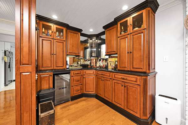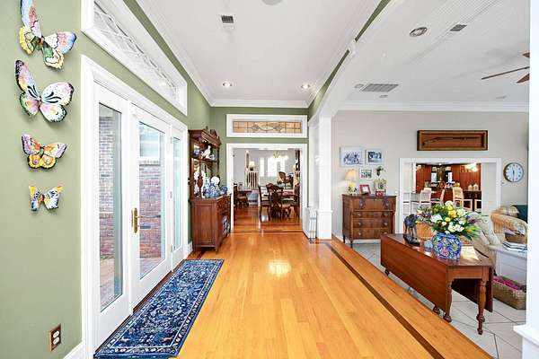 Every so often you come across a place that stops you in your tracks and leaves you speechless... This is definitely one of those places as it has been meticulously planned out with no detail overlooked or expense spared to brilliantly and seamlessly combine facets of local history with today's modern luxuries while keeping that warm homey feeling in the forefront to create a one-of-one home... let's go check it out! Starting with the front door... you will immediately know that you are in for a treat as this entrance dazzles with custom cut-glass while the sheer weight of the door makes it feel like you are about to open a vault to a maison of treasures. This is where the awe-inspiring details begin as you are greeted with a warm welcome in the foyer showcasing a genuine marble floor that came from the old Farmers Bank. Just off the foyer is the primary suite that is sure to impress. This magnificent suite offers convenience and luxury as it is secured by beautiful pocket French doors and elevated by rich-colored hardwood, a multi-tiered tray ceiling enhanced with scrupulously crafted crown molding. Accompanying this first-class suite is a lavish ensuite featuring his/her vanities accentuated with fabulous butternut walnut bases and linen cabinetry, then finished off with artisan crafted tiled backsplashes. Speaking of tile... you have to check out the breathtaking walk-in shower caressed by more of that sublime tilework adorned with a European-style mosaic. Then don't even get us started with the showerheads... The showerheads are so upscaled that the hardest part will be leaving it because you will feel so refreshed and relaxed but if showers aren't your thing... you have an equally impressive soaking tub to soak all of your worries away. Rounding out the ensuite bath is an extravagant walk-in closet complete with a wonderful assortment of built-ins. In the heart of the home is a designer kitchen that will be the envy of any chef. The kitchen is souped-up with an abundance of sumptuous cabinetry even having cabinets all along the island under the bar seating. Speaking of which... the bar stools came from the old Hennings Restaurant and are negotiable! The counters are topped with sleek black granite that pairs beautifully with the other black and white nuances to make the kitchen pop! The kitchen is also equipped with state-of-the-art stainless-steel appliances shining under an extensive array of recessed lights. The quaint dining area paired with the fireplace fosters a cozy feel then to ramp the upscaled finishes back up... you also have an elaborate wet bar in the kitchen perfect for whipping up signature cocktails for your guests. Pedestaled by the kitchen is an intimate dining room and next to the other side of the kitchen is an adorable bedroom, top-notch laundry room, and full bath featuring more first-class finishes. Nestled to the rear of the home is a splendid sunroom surrounded by marvelous windows coupled with superb custom transoms to make it the ideal spot to just sit back and relax. Then when you are in a more of an entertaining mood... make your way to the grand room highlighted by a grandiose gas-log fireplace and more of those exceptional transoms plus a remarkable custom cut-glass door. All of this custom cut-glass you will find throughout the home was carefully selected and of the highest quality that is about 3x's thicker than what you will find at most places. The next tier of the home hosts 3 more generously sized bedrooms along with 2 more full baths. The tour continues down to the basement bordered by exquisite poplar barnwood. Even the construction of this home is historical and unmatched as the home is framed with redwood and the brick on the original part of the home coming from the old Foster Ray Mansion and Blackburn Building. Outside you have a 9.10-acre (+/-) spread of land right in town with exotic trees/bamboo, 2 creeks, a pool and an old railroad trestle from where trains would chug through back in the day!