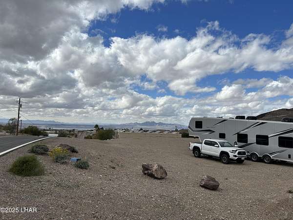 Est $2,431/moBuildable lot with amazing lake views. Flat driveway, close to the open desert in Horizon Six area. Area accomadates horses for more rural living while still being close to all of the luxuries of town. Just minutes away from the new Riviera Marina. Owner has plans available for a 3 bedroom 2.5 bath home, designed to take advantage of the lake views. Double 60+ foot RV garage and 2 car garage. Isn't it time to have your dream home built in Lake Havasu