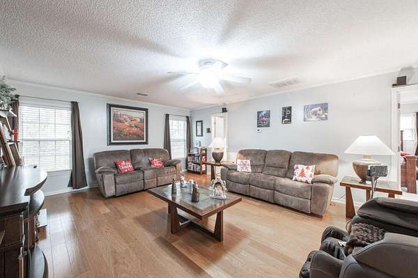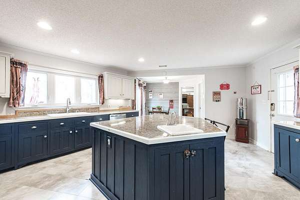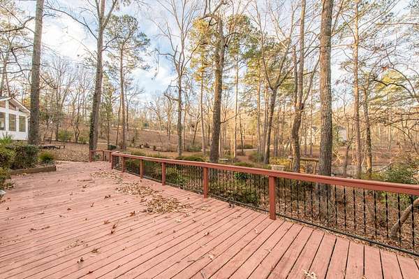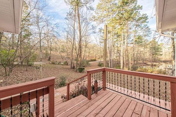 Set on 7.50 breathtaking waterfront acres, this 3,600 sq ft all one-level home with a garage, an inlaw suite and detached studio apartment/game room - this home offers space, comfort, and views that never get old! Hardwood floors flow throughout the main living areas, creating a warm and timeless feel! The living room is the heart of the home with vaulted ceilings, a cozy fireplace, and ceiling fan, seamlessly connecting to the formal dining room! The well-appointed kitchen is designed for both everyday living and entertaining, featuring a massive pantry, abundant cabinet and counter space, a large island with an additional sink, double oven, built-in microwave, dishwasher, and refrigerator! A charming breakfast nook provides the perfect spot to start your day! Soak in the scenery from the lovely sunroom with tile floors and panoramic water views, or step outside to the expansive three-tier deck, complete with a screened-in porch and ceiling fan, ideal for relaxing or entertaining while overlooking the water! The owner's suite is a private retreat with a tray ceiling, ceiling fan, and a spa-like ensuite offering double vanities, granite countertops, wood-framed mirrors, and a walk-in tiled shower! A spacious den - perfect for work, hobbies, a quiet retreat or an inlaw suite with private access to a guest bedroom and full bathroom with a soaking tub and separate shower! Two additional guest bedrooms, each with ceiling fans, share a full bath! Additional features include a greenhouse, a chicken coop and a trail that goes to the back of the property with a shooting range! This exceptional waterfront property blends comfort, functionality, and outdoor living - an ideal place to unwind, entertain, and enjoy nature at its finest!
