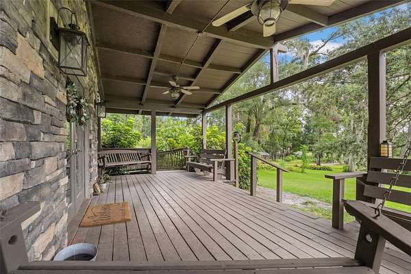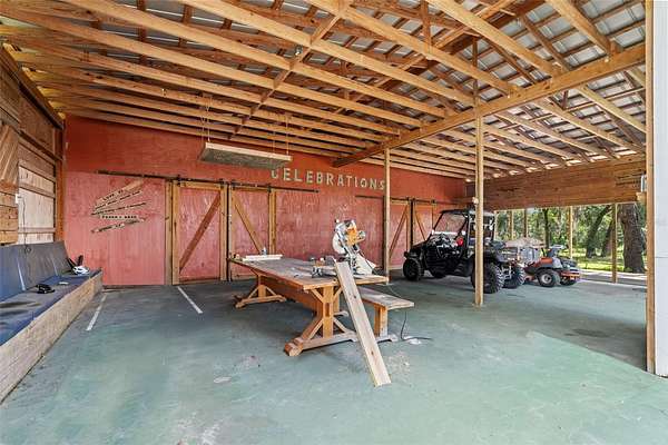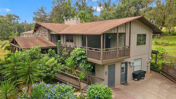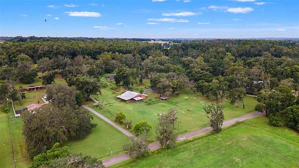 Endless opportunities at this incredible property on 10.3 ACRES! Zoned AG + additionally zoned for an Assisted Living Facility, this property features a 9 bedroom 4.5 bathroom home with a POOL, 8 fully fenced pastures, and multiple barns. Bring your animals! The main home with stunning stone accents and Hardie Board siding boasts over 5,100 of heated square feet! Upstairs is a large kitchen, formal dining room, spacious living space with wood ceilings, 5 bedrooms, and 2 bathrooms. Downstairs is a second full kitchen, living room, 4 bedrooms, and 2.5 bathrooms. A beautiful stone fireplace runs through both floors in the living rooms. The half bathroom has an exterior door - perfect for when working outside. There are primary bedrooms on both floors and multiple exterior doors for easy access in and out. The downstairs primary bedroom already has plumbing in place if you wanted to add a kitchenette. This home would work well for multifamily or even to live on one floor and rent out the other one. There are a total of 5 covered porches around this home and the front porch has the most beautiful sunrises from the neighboring pasture. Main home Roof 2017. In addition, this home is ADA Accessible! The fully screened saltwater pool was resurfaced 2 years ago and is also ADA Accessible with a lift. The above ground hot tub conveys with the property as well. The larger barn is 2,464 square feet and can hold up to 8 cars and is abundant for storage on this property. There is a 3rd covered barn with multiple stalls sitting on a slab, and a 4th small covered structure in one of the pastures. Additional features of this property include an electric gate, a paved driveway, elderberry, banana, and orange trees, a small pond, a feeding trough, and beautiful flowers and wildlife throughout. There are so many personal and business opportunities here. You can live here and enjoy everything this home has to offer and simultaneously you can run an agricultural business out of this home and potentially qualify for a massive tax exemption. This is truly a rare and unique opportunity in arguably one of the best areas in Brooksville! Located less than an hour from Tampa International Airport and Busch Gardens, 1.5 hours to Disney World, and within 15 minutes to multiple shops, restaurants, and hospitals.