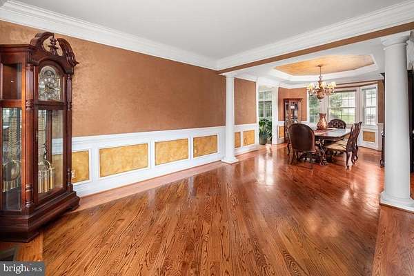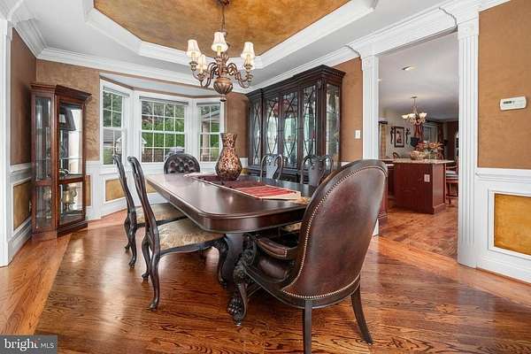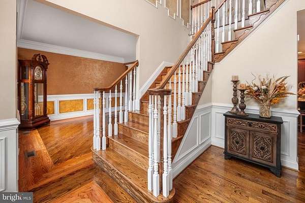- Additional Stairway, Attic, Attic/House Fan, Breakfast Area, Built-Ins, Chair Railings, Crown Moldings, Dining Area, Eat-In Kitchen, Family Room Off Kitchen, Flat, Formal/Separate Dining Room, Gourmet Kitchen, Intercom, Island Kitchen, Jetted Tub Bathroom, Open Floor Plan, Pantry, Primary Bath(s), Recessed Lighting, Skylight(s), Soaking Tub Bathroom, Sound System, Table Space Kitchen, Traditional Floor Plan, Tub Shower Bathroom, Upgraded Countertops, Wainscotting, Walk-In Closet(s), Walk-In Shower Bathroom, Wood Floors