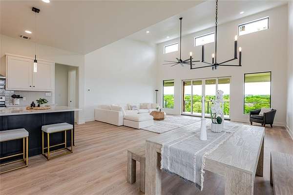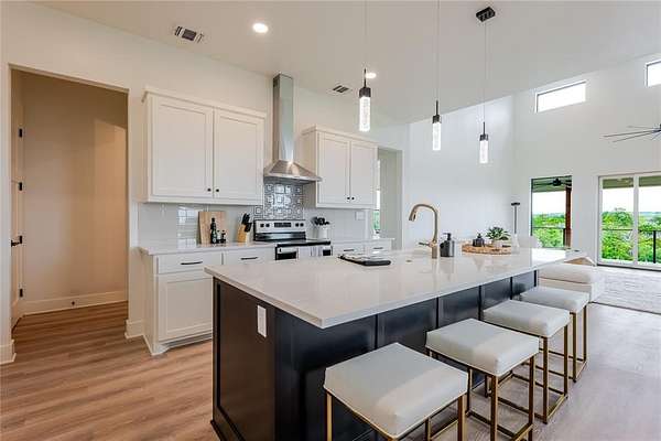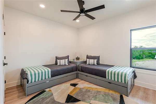 GET IN THE LOOP! Hells Gate Loop at Possum Kingdom Lake. This home is ready for summer! BOAT SLIP INCLUDED. FURNISHED, stocked kitchen ,baths, outdoor grill, roller shades MOVE IN READY! New Construction in Possum Kingdom's Sportsman's World . Modern Lake House boasts of Privacy on nearly 3 acres . Open concept kitchen with large living area. Quartz counters tops and luxury vinyl flooring featured throughout for easy lake living. Large sliding doors provide plenty of natural light . The Primary suite is upstairs with and showcases a free standing tub, large walk in shower with custom tile, large walk in closet with a washer dryer connection and double vanity. The second ensuite is downstairs with a private bath . Spacious laundry room with plenty of storage. Their is a designated space with electrical to install a dumbwaiter from laundry room to kitchen if you desire. All bathrooms have custom tile and frameless glass showers. Delta Stryker custom plumbing and decorative door hardware. There is custom lighting and Minka ceiling fans in every room . Two American Standard HVAC units for efficient cooling and heat. The lot is positioned on the creek crossing and cleared to enjoy the wildlife beautiful PK sunsets . This lot provides plenty of room to build your own shop, party barn, or swimming pool and can be used as a VRBO investment. Close to the Award Winning Bluff Creek Marina and community tennis courts, pickle ball, swimming pool and Sportsmans airport.