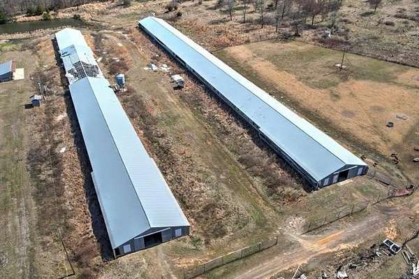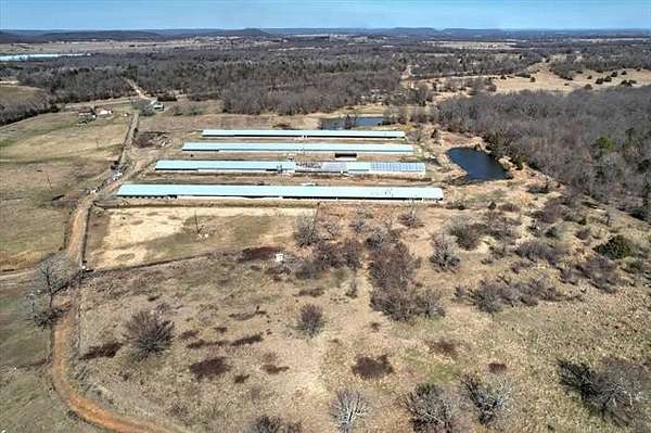 Discover endless opportunities on this expansive 55 acre property featuring two homes and prime farmland with incredible agricultural potential. The first home is a spacious double wide mobile home with 4 bedrooms, 3 bathrooms, a fully equipped kitchen, hot water tank, city water, sewage holding tank, and electric heating. It also includes a large enclosed shop and a covered carport for storage and convenience. The second home offers 3 bedrooms, 1 bathroom, a cozy kitchen, hot water tank, and additional enclosed storage space. The lush pastureland is fully fenced and gated, ideal for cattle grazing, hay production, or farming, and includes three ponds for fishing and recreation. On the property, you'll find two 40x500 former chicken broiler houses, one cleaned and solar wrapped with fans, perfect for growing vegetables or plants, and the other in excellent condition for storage with a dedicated electrical panel. A reliable water well and a 400-amp electrical panel support agricultural operations, with a water pump only three years old. Conveniently located just off Highway 26, this property is only 4 minutes from McCurtain, 10 minutes from Keota, and 20 minutes from Stigler. Whether you're looking for a working farm, multi-family homestead, or investment property, this versatile land is ready for your vision. Please note the property is occupied and gated, so appointments are required for viewing.