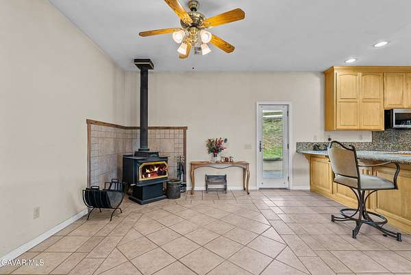 - Central, Fireplace(s), Propane, Wood, Wood Stove