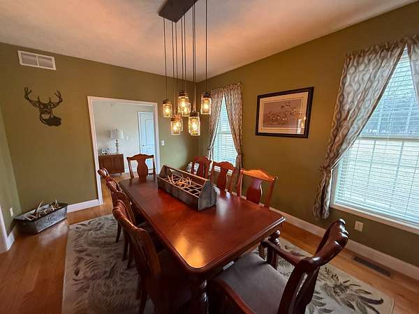 Tucked back on 7 peaceful acres along Cedar Grove Road in beautiful Pope County, Illinois, this custom-built home welcomes you with the kind of warmth that instantly feels like home. Designed with both comfort and flexibility in mind, it offers generous space to grow a family or easily accommodate two generations under one roof-all surrounded by the natural beauty of Southern Illinois. Step inside to the main floor's open-concept family room and kitchen, where everyday living and entertaining come together effortlessly. The heart of the home is the thoughtfully designed kitchen, featuring a large island with bar seating and stunning Amish-crafted custom cabinetry, perfectly planned for meal prep, gatherings, and making memories. Just off the kitchen, a bright bay-window breakfast nook offers peaceful views of the surrounding land-an ideal spot for morning coffee or casual meals. For outdoor dining and grilling, the covered deck with low-maintenance Trex decking is conveniently accessed from the kitchen, while the elegant formal dining room is ready for hosting holidays and special occasions. Hardwood floors flow throughout this entire space, including the welcoming foyer and entry from the attached two-car garage. The split floor plan provides privacy and functionality. The main bedroom suite is tucked away on one side of the home, complete with an ensuite bathroom and walk-in closet-your own quiet retreat at the end of the day. On the opposite side, two additional bedrooms and a full bath offer comfortable accommodations for family or guests. A charming laundry room on the main floor adds everyday convenience. Downstairs, the finished walk-out basement expands the living space even further. With a full second kitchen showcasing more beautiful custom cabinetry and tile flooring, this level is ideal for multi-generational living or hosting extended guests. You'll also find a spacious family room, a bedroom, and a home office. Excellent high speed internet provided by Shawnee Communications makes working from home a breeze. The home's mechanical systems, including the geothermal heat, are easily accessible, and a large floored storage area provides the perfect place for seasonal decor and extras. Thanks to the walk-out design along the entire west side, the basement is filled with natural light and offers easy access to the hot tub tucked beneath the covered deck-an unbeatable spot to unwind while watching breathtaking sunsets. Outdoor living is truly a highlight of this property. From the inviting front porch to the expansive covered deck and back patio, every angle encourages you to slow down and enjoy the outdoors. Just steps from the home is a dream detached shop and "man cave," offering plenty of room for vehicles, equipment, and projects, plus a cozy back area perfect for card games or hanging out with friends. Complete with gas heat, air conditioning, and a full bathroom, this space is as functional as it is fun. The 7-acre setting rounds out this exceptional property, with a mix of open lawn and pasture land. The home sits nicely back from the road, while the paved driveway offers ample parking-including space for a camper or horse trailer. A loafing shed in the pasture makes this property well-suited for a couple of horses. Outdoor enthusiasts will love the unbeatable location: just a minute from Sand Cave Road, allowing you to ride horses directly into the Shawnee National Forest. The River to River Trail crosses Cedar Grove Road nearby, and Bay Creek Camp, Hayes Canyon Campground, Bell Smith Springs, Lake Glendale, and Dixon Springs State Park are all close by, offering endless hiking, biking, and recreational opportunities. This property truly has it all-a stunning four-bedroom home with a separate mother-in-law suite and home office, a detached shop and man cave, and 7 beautiful acres in a prime location. Come experience everything this incredible home has to offer and imagine the lifestyle waiting for you here.