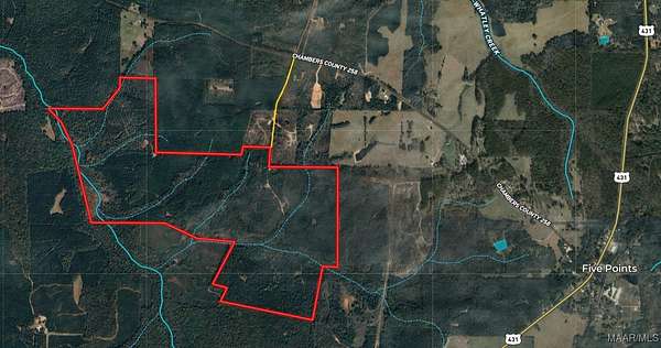 Rocky Branch 407 407 +/- Acres | Five Points, Alabama | Chambers County Legacy Hunting & Timber Tract Welcome to Rocky Branch 407, a beautiful 407-acre hunting and timber property in Five Points, Alabama. This land has been in the same family for over a century, and it's been managed the right way every step of the way. Located about 40 minutes from Auburn and roughly an hour and 45 minutes from Atlanta, it's close enough for easy access but far enough out to feel like real country. The property offers a great mix of rolling pine ridges, hardwood bottoms, and year-round water. Seven creeks run through the land, six smaller branches and one larger creek, along with two duck holes that add excellent waterfowl hunting opportunities. A strong internal road system ties it all together, leading to nine established food plots, most of which have already been planted. The layout of the timber and terrain makes this tract hunt big, holding plenty of deer and turkey year-round. Rocky Branch 407 has been part of the same family for generations, but now it's ready for a new one to enjoy. It's rare to find a property with this much character, timber value, and wildlife habitat all in one. To make things even better, the seller is offering attractive owner financing terms, making it easier to make this one your own. Property Highlights: 407 +/- acres in Chambers County, Alabama 6 small creeks and 1 large year-round creek 2 duck holes for waterfowl hunting 9 food plots (most planted) Excellent internal road system Loaded with deer and turkey Family-owned and managed for over 100 years Attractive owner financing available Timber Breakdown: 232 +/- acres of mature loblolly pines (25+ years old) 45 +/- acres of 15-year-old loblolly (recently thinned) 50 +/- acres of 12-year-old pines 80 +/- acres of hardwoods with white & red oaks