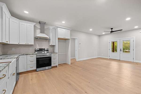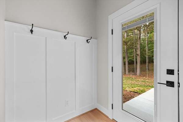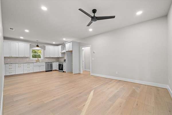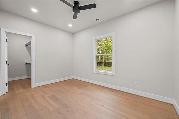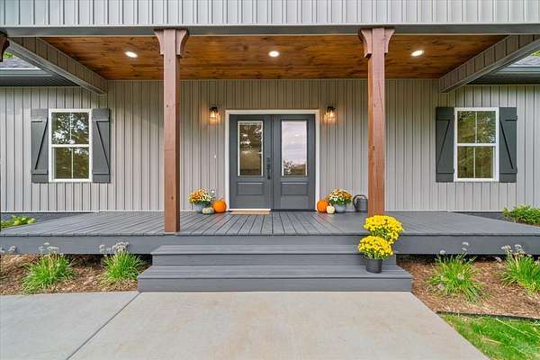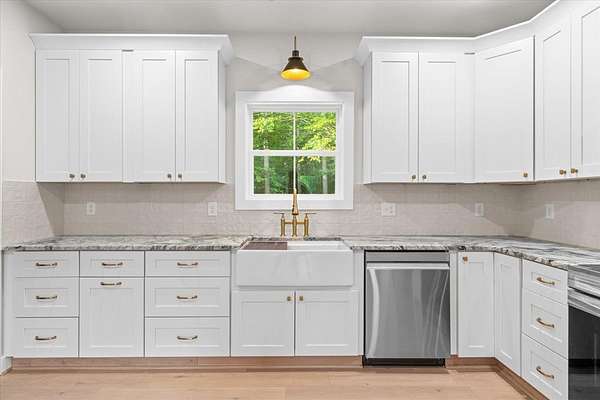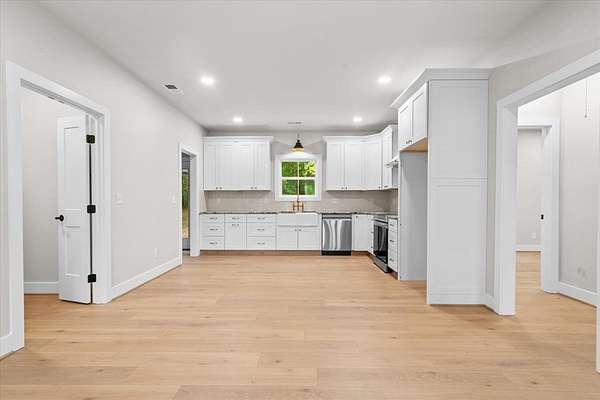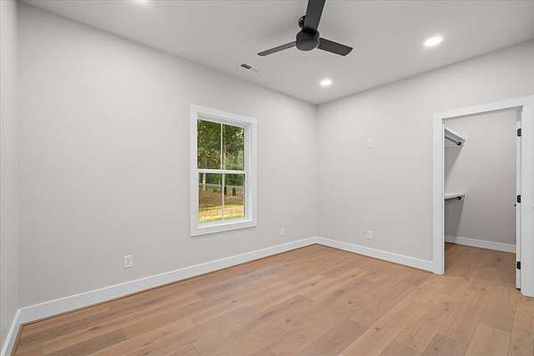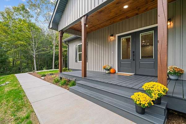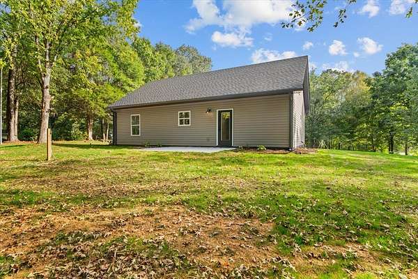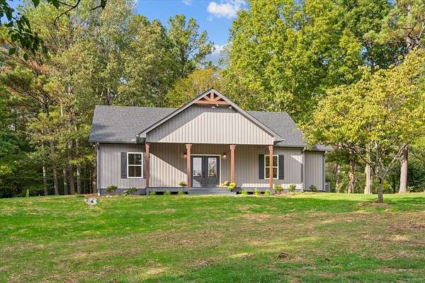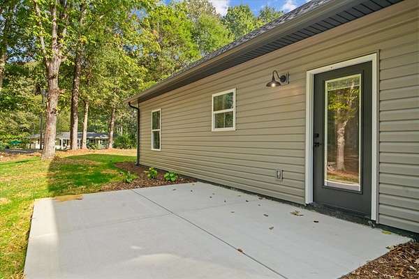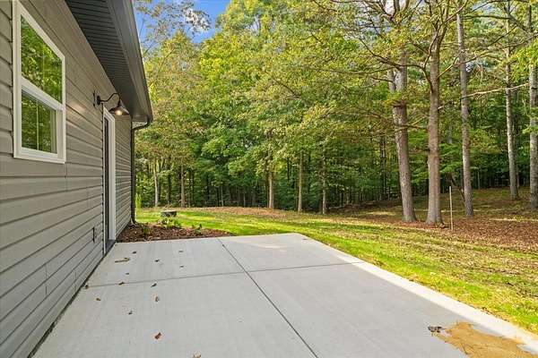 This stunning 3-bedroom, 2.5-bath new construction home combines modern comfort with timeless charm. Enjoy a welcoming covered front porch and double door entry leading to an open living room and kitchen--perfect for entertaining. The kitchen features new stainless steel appliances, a farmhouse sink, and solid surface countertops. The owner's suite includes a spacious walk-in closet and luxury ensuite bath with a ceramic tile shower with glass door and double vanities. Two additional bedrooms share a Jack-and-Jill bath with double sinks and a separate toilet and tub/shower area. A separate laundry room, ample attic storage, and a tankless water heater complete this beautifully designed home. A back patio overlooking the wooded backyard on a 1.58-acre lot--offers space, privacy, and style.