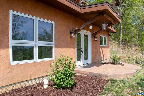 If you are looking for a quality built, energy efficient home that offers peace, quiet, privacy and amazing mountain views, then you need to visit the Limehaus, named for the natural hydraulic lime used on the exterior of the home. The 1st floor of Limehaus has a primary bedroom & bath, kitchen, living room, dining area, 1/2 bath and laundry. Upstairs you'll find a full bath and 2 more bedrooms that walk out to a spectacular deck where you can enjoy the spectacular views. Limehaus was designed for energy efficiency and a healthy indoor environment. It uses a passive solar design to keep utility bills low and enjoys radiant floors on the main floor for comfortable heat in the winter. Tankless hot water heater and a gas range are also a plus. The yard is low maintenance, planted with native grasses, wildflowers and wetland perennials. The Property consists of two lots, the house is on 1.94 acres and the adjoining lot is 3.4 acres. The neighborhood, Farm Colony, is a working Farm and the residents of the neighborhood can fully enjoy Farm life without having to own and maintain an entire farm. This is a Greene County MUST SEE!