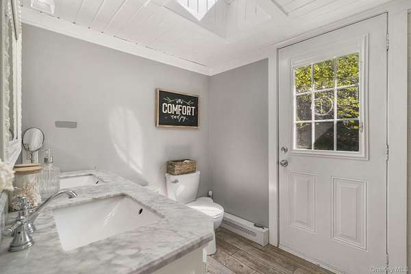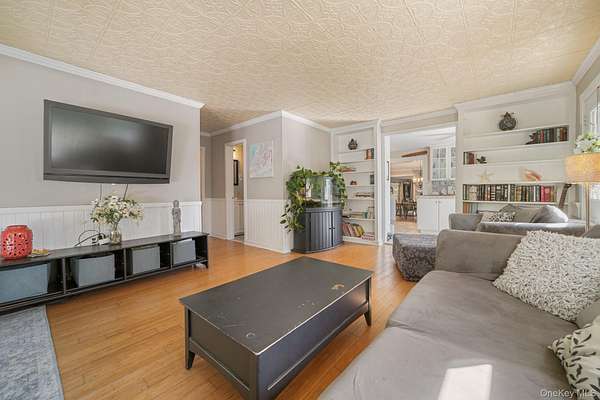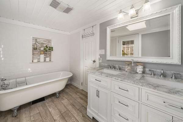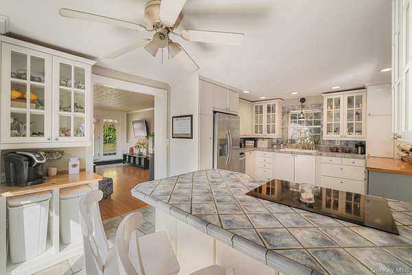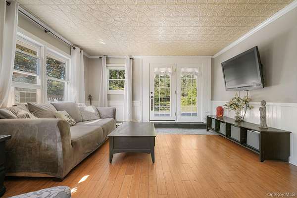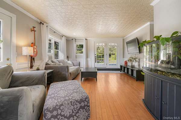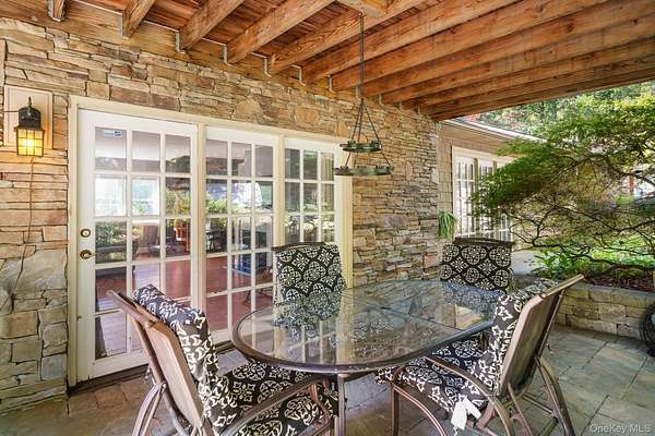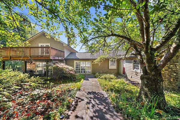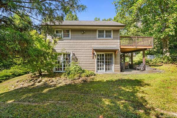 Beautiful Country Custom-Ranch on 3.4 Private Acres in GREENVILLE, NY & MINISINK VALLEY Schools! Welcome to this stunning, custom-updated ranch home nestled on 3.4 acres of private, beautifully landscaped property. Originally built in 1955, this unique residence has been completely renovated and expanded to blend timeless charm with modern comfort. Step into the custom kitchen, thoughtfully designed with glass-front cabinetry, tile countertops, double pantries, tile flooring, ceiling fan, and all appliances included. French-style patio doors lead to a wraparound front deck-ideal for dining al fresco or relaxing while overlooking the beautiful gardens. The living and dining rooms showcase wide plank wood flooring and a bay window framing scenic front garden views. Custom Marvin true-divided-light French doors enhance the home's craftsmanship and character throughout. Enjoy quiet moments in the cozy library/den, complete with built-in bookcases, wood wainscoting, and entertainment center. Step out through patio doors to a serene side deck. Upstairs, the expansive primary bedroom offers cathedral ceilings with exposed wood beams, wide plank floors, and dual closets. French doors open to a private balcony with picturesque views of the backyard gardens, birdlife, and surrounding woodlands. Outdoor living is exceptional with a bluestone patio, multiple decks, natural stone chimney, and beautifully designed gardens with ponds and a stream, creating a peaceful, secluded retreat. Bonus: A converted three-stall barn offers a large, fully equipped studio apartment with kitchen, full bath, and independent heating-ideal for guests, remote work, or creative pursuits. Other features include a paved driveway, extensive plantings, and a mature mix of trees and shrubs offering unmatched privacy and exclusivity. A truly one-of-a-kind property that blends country charm with modern luxury-don't miss this extraordinary opportunity.