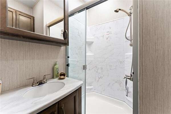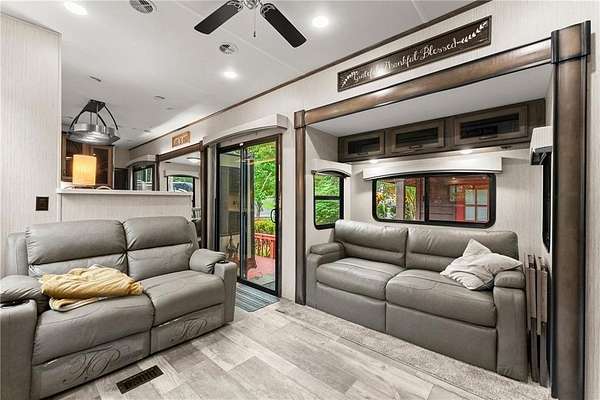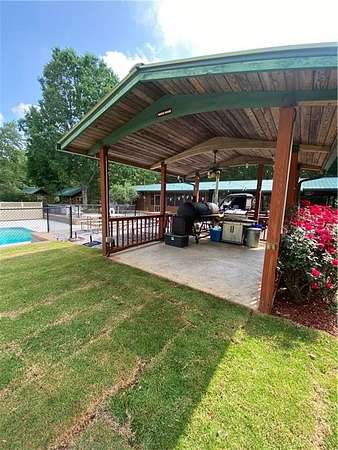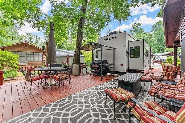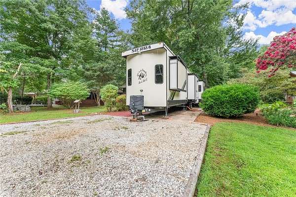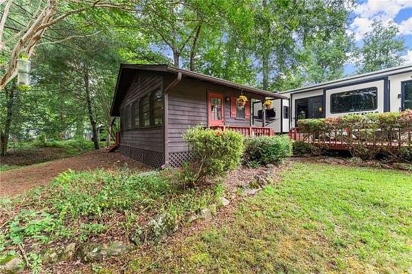 The largest lot with 61 feet of creek frontage is nestled within the tranquility of the North Georgia Mountains with the flexibility of RV living here at Paradise Valley. The cabin on the creek offers you a relaxing retreat! Along with the cabin is a 2020, 40' Forest River Sierra with 4 slide outs. this RV sleeps 6 comfortable and has a full size fridge, gas stove is all included with the kitchen. The main bedroom is a standard size Queen bed, barely slept on. It is very nicely maintained, seriously just like NEW, and ready for it's new memories. The cabin boasts new flooring, new HVAC split unit , beautiful decks, heavy duty outdoor furniture, fishing right out of the back yard in the stocked creek. All appliances and furniture (indoor & outdoor) stay! It is move in ready. There is a storage shed as well for all those fishing poles, water floats and more. The added parking space for your RV with hookups; makes it an excellent base for those who love to explore while still having a comfortable place to return to. Paradise Valley has well-maintained amenities including a pool, pavilion/clubhouse with planned activities for those who like a bit more social interaction. There's no shortage of ways to enjoy your time here, year round. The community is located near Cleveland, Helen, Dahlonega, and other popular mountain towns for easy access to a variety of activities, from hiking, fishing, shopping, dining, and wine tasting at many local vineyards.