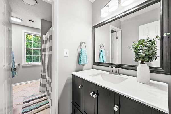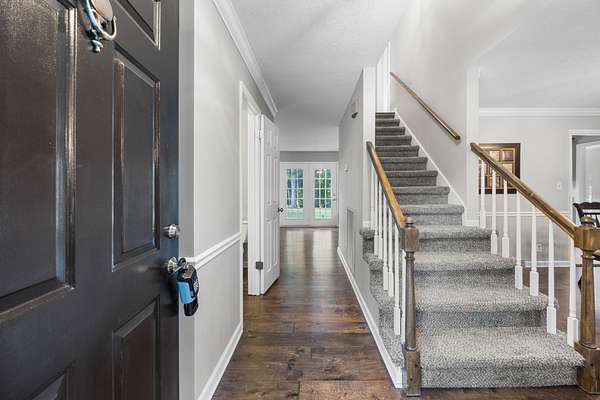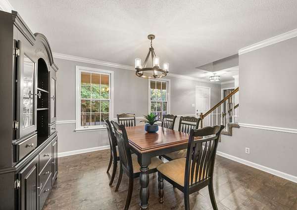 Hidden in plain sight! This gem is quietly tucked on 2.55 acres right in the middle of Clarksville--you get peace, privacy, and no HOA drama. Step inside from the large covered porch to the welcoming foyer and explore a thoughtfully designed main level featuring a spacious kitchen that opens to the living room, a formal dining room, a sunny eat-in area with bay window, a dedicated office or den, and a convenient half bath. Upstairs, the generous primary suite includes double vanities, a walk-in shower, and large walk-in closet. Two oversized guest bedrooms and a fully renovated full bath round out the second floor. As-if this is not enough space there is an additional separate upstairs bonus room located over the 2 car garage. Step outside and take in the gorgeous views & make use of the backyard storage shed--ideal for tools, lawn gear, or hobbies. Recent updates include: New roof (2024), New shutters & exterior pressure wash (2025), HVAC systems replaced (2017 & 2019), Flooring, paint, modern fixtures/fans, and whole-home surge protection (2017)