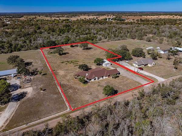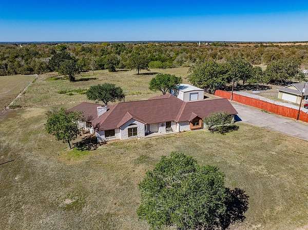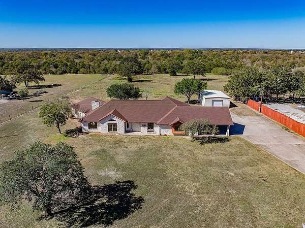 Entering the home through the foyer and going past the large formal dining room, a hallway leads to an open-concept kitchen and living area that?s ideal for both everyday life and entertaining. The two-sided gas fireplace faces both the living room as well as an extra sitting room with a wet bar. Primary suite features French doors that open directly to the back porch, a large en-suite bathroom. A good-sized study with floor to ceiling built-in bookshelves. Down the hall is a large laundry room with a utility sink. A spacious bedroom and half bath before heading into the kitchen. There are two more bedrooms that share a jack-n-jill bath. Fresh paint on every wall & new doors throughout the home to the recently pressure-washed exterior. An over-sized two-car garage, carport, and an 864-square-foot shop. Centrally located almost equal distance from the larger towns of La Grange, Giddings, and Smithville. A short drive to Bastrop and an easy commute to the Austin Airport.