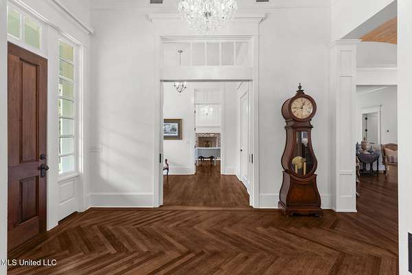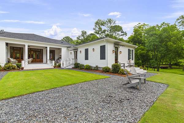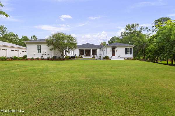 Welcome to 407 St Augustine Dr in Madison, MS. Perfectly located in the City of Madison at the intersection of Rice Rd and St. Augustine Dr. As you begin the tour take in the beauty and privacy of 5 acrds +/- acres of private land, shade trees, pond, and incredible entry drive to the home. Upon arrival you will notice beautiful oaks and planted pines along the drive. A quick peak to your left will reveal your private pond with mostly like a preening mallard, a turtle possibly, and fish swimming on the edges. Continuing your approach to the Home you will notice a fork in the drive leading to a circular drive for quick entry and guest drop-off. Finish your approach to parking in your garage by going under the covered walkway. Take a 3 second pause, and look to your right and you will notice a detached cottage. It is built to mirror the architecture of the home. It can be your private office, guest house, individual escape when needed, or movie theater for those with some creativity. It is referred to as a Carriage house. Its own front porch is just as welcoming as the one on the main house, begging for rocking chairs and hot cups of coffee or cold ice tea. Plan for the day, or wind down at the end of it. Don't worry these porches are not the only place for that. In order to complete your drive home, simply continue under the covered walkway, over the brick lined path, and pull right into one of three garage spots with ample room for today's larger family vehicles. Grab your briefcase, groceries, or purse and enter the home from the private owners door on the side of the house. From here, depending on the day, you can immediately put down your carried items on the large kitchen island and begin your wind down. You will notice the highest end appliances, gourmet kitchen, and custom built cabinetry. Custom is the key to this Home. Everything was thought out and designed by architects, interior designers, and the current owners. Emphasis was put on accessibility, and simplicity with particular attention placed on open and inviting interior room. The Home is a four bedroom four and one half bath structure encompassing 5200 square feet. Master accommodations are on one side and family accommodations are on the other. Included off the open kitchen is a family room for gathering. You will notice as you move around the Home the incredible patterns and attention to detail of the hardwood floors as they run throughout the Home. At the front entry you will notice on the right and the left of the entry hall, two offices. They can be transformed into whatever your heart desires. Huge custom windows looking out on to the front of the property provide incredible lighting and views from these spaces. The Home is specifically situated on the property to take advantage of the patterns of the sun, limiting direct intrusion of sun, and taking advantage of North and South facing advantages. As impressive an entry as it is the rear porches of the Home are the same. Opportunities to cook outdoors are there with the built in grill. Private courtyard with blue slate pebble walkways around the courtyard give 360 degree access to flower beds, and open up to the rear four plus acres of property which can be purchased separately. Current owners built the courtyard with attention given to the possibility of building a pool. It is an incredible opportunity to build one right there, they just chose not to do so. The construction of the Home is not to be left unnoticed. Custom built in 2018 with special attention given to the foundation. Multiple engineered pilings drilled deep into the earth and reinforced with steel and filled with a specifically ordered concrete recipe insure without a shadow of a doubt this Home is built to last and stay where it is. So much love and detail has been given to this home that to describe it in words would not do it justice. Please take a few minutes to peruse the pictures and enjoy the visual descriptions.
