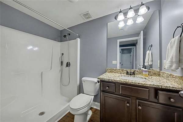 Welcome home to this stunning raised ranch with In-Law Suite nestled at the end of a peaceful cul-de-sac in quiet Heritage Woods. Thoughtful design and elegant finishes shine throughout, including hardwood floors, crown molding, ample storage, and an open-concept layout that's perfect for everyday living and entertaining. The spacious eat-in kitchen features upgraded granite countertops, a marble backsplash, deep single-vessel sink, and stainless steel appliances and abundant counter space. The Owner's Suite on the main level is a true retreat with a luxurious renovated bath boasting a wet room with soaking tub, double shower heads, and a huge walk-in closet. Two additional bedrooms, a full hall bath, and a convenient powder room complete the main floor. Enjoy cozy evenings in the family room with a gas fireplace, or head downstairs to the full in-law suite, featuring two bedrooms, a full bath, media room, and second complete kitchen--ideal for guests, extended family, or rental potential. Step outside to your private, fenced backyard, which is only part of the expansive 1.75-acre lot, offering space to relax, garden, or play. Don't miss the workshop or storage room off of the garage. All just minutes from I-575 and vibrant Downtown Ball Ground, with its charming shops, restaurants, and community events. USDA area eligible!