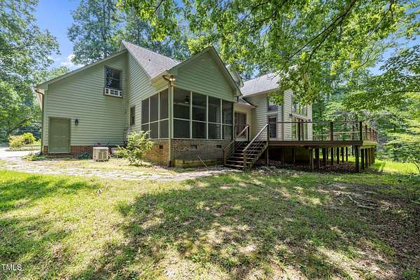 This private retreat in southern Alamance County spans 36 secluded acres, just 20 minutes from Burlington and Saxapahaw, and within convenient reach of RTP and Triad airports. The scenic meandering driveway follows a small creek and leads to a rustic-modern 3-bedroom home with a bonus room, over 3,400 sq. ft. of living space, expansive decks, covered front porch, a screen porch, and serene views of a shared pond and nature. Highlights include: Great room with 18-ft ceilings, stone fireplace, and wall of windows. Internet Fiber available through T-Mobile, formerly Lumos! Renovated master ensuite and updated kitchen with custom cabinetry, granite, stainless appliances, and Wolf range. Attached (40' x 24') 2-car garage, detached 3-bay shop, and generator. The adjacent 8.12 acre parcel will be offered first right of refusal to the buyer of this parcel. $190.000 and includes driveway, well & septic.(mls 10114379) Exterior siding needs some paint/TLC. Perfect for those seeking a peaceful nature retreat with modern comforts.