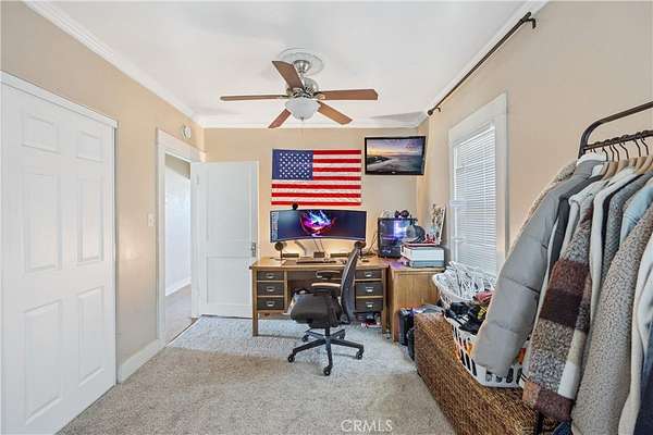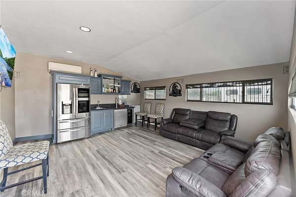 A rear unit consisting of 2 bed/1 bath features a stylish built-in bar with a full-size kitchen. Ideal for a home business, client lounge, or private guest suite.