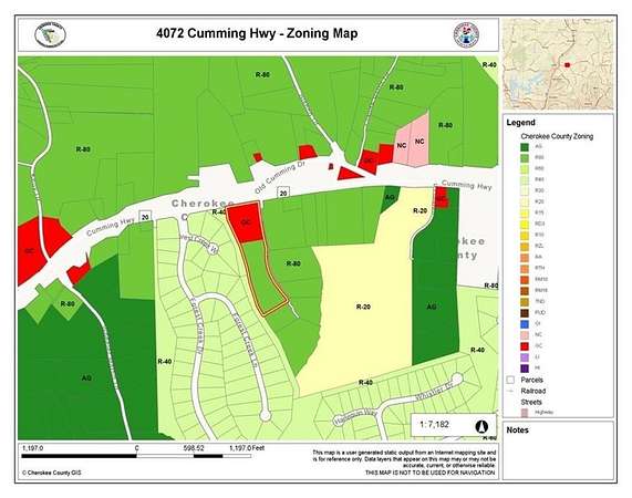 Dual-Zoned, Double the Potential: Invest, Build, Thrive! Prime Mixed-Use Investment Opportunity on Cumming Hwy, Canton, GA Unlock the full potential of 5.75 acres along high-visibility Cumming Highway in growing Canton, GA. This versatile property features 1.75 acres zoned General Commercial, ideal for office, retail, or continued rental income. The front parcel includes a duplex and a 3-bedroom, 2-bath single-family home-perfect for investors or owner-occupants looking to generate income while developing the land. The remaining 4 acres are zoned R-80, offering room to expand with potential residential development or to create a private estate behind the commercial frontage. With utilities in place and excellent road access, this parcel provides both immediate income and long-term upside in one of Cherokee County's most desirable corridors. Whether you're looking to invest, build, or both, this property delivers flexibility, location, and value in one package.