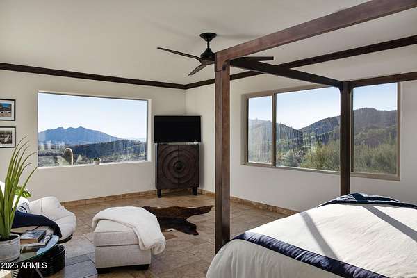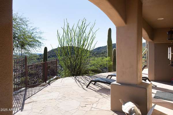 Like two homes in one! Sensational city light and mountain views expanding over 50 miles showcase this lovely home situated on 10+ private acres within the exclusive enclave of Carefree Ranch Homesteads adjacent to Desert Mountain. Owned Solar w/Tesla Charging Station for ultra low electric bills. You'll experience the ultimate privacy among neighbors with $5M+ homes on large 5-10 acre sites. The main level has no steps with Living Room, dining room, kitchen, primary bedroom, powder room and 4 car garage. The lower level includes a 2nd master suite, large game room or guest living room with wet bar and two additional bedrooms and bath. This arrangement is perfect for shared ownership. The heated pool & heated spa and built in BBQ overlooking the most magnificent city light & mountain view