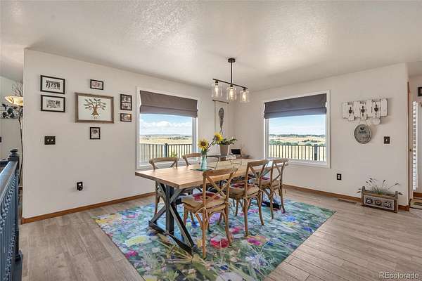 WOW! That is what even the pickiest of home buyers will say about this custom, one-owner property! A country estate with the best location! The model of PRIDE OF OWNERSHIP; this gorgeous property boasting 40 ACRES with NO COVENANTS will check all of your boxes..stunning Ranch style home, Shop, Barn, Good Pastures, Mountain Views, Commercial Grade Paved Driveway and all of this just minutes from Elizabeth/Parker/DIA and Spring Valley Golf Course; CLEAN AND PERFECT! This ranchette is a MUST SEE and there are too many updates and upgrades to list here. The home has everything on the main level plus a finished walk out basement. Seller has meticulously updated with features like new Pella fiberglass double pane windows, heat pump, hot water tank, furnace, roof, flooring, bathrooms and trex decks with metal railings. Low maintenance exteriors and low energy costs; home is cool in the summer and cozy in the winter. Whole house attic fan, surge protector and humidifier plus a Heatilator wood burning fireplace and Kohler generator in case of power loss. High end finishes like solid knotty oak cabinets, granite countertops, Bosch appliances, 6-panel solid doors and gorgeous flooring. Large attached garage. Inside is fabulous but step outside to the lifestyle you've been looking for! A perfect country retreat, private and expansive. Ideally set up for the hobbyist of any kind. 2 substantial Morton buildings; 60x40 dirt floor barn is open and ready for storage, critters or convert to a large workshop. 30x24 shop/detached garage has 2 car doors, 220 service, the electric charging station and concrete floor. There are also 2 loafing sheds and the property is cross fenced into 4 pastures including one for the dogs or small livestock lined with woven wire. The yard is also dog safe and two gates keep out unwanted visitors. Seller owns and will transfer 11.5 acre/feet of adjudicated water rights and the mineral rights. The ONE that will not disappoint, come live your COUNTRY dream!