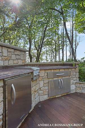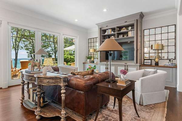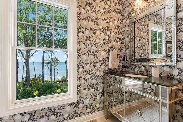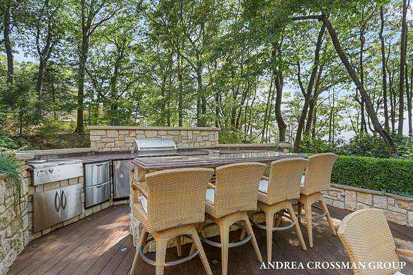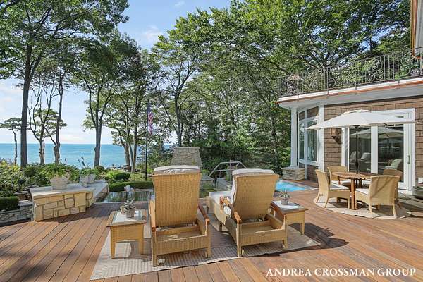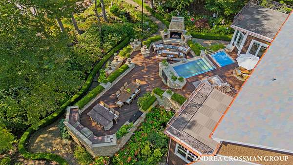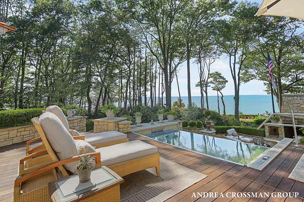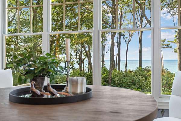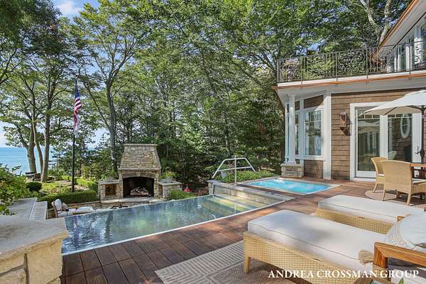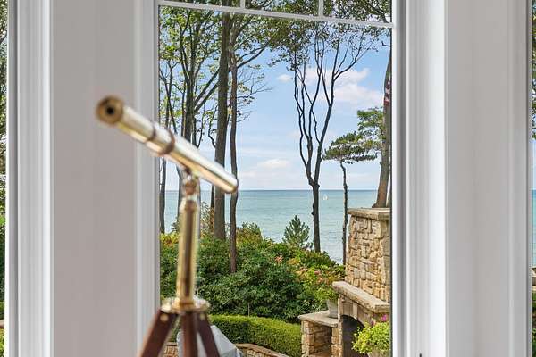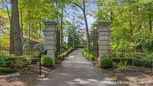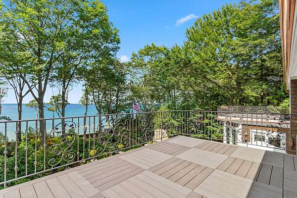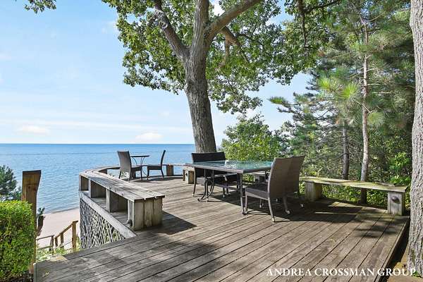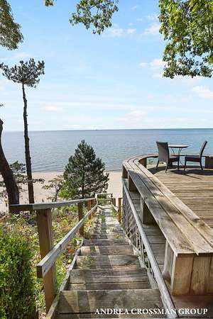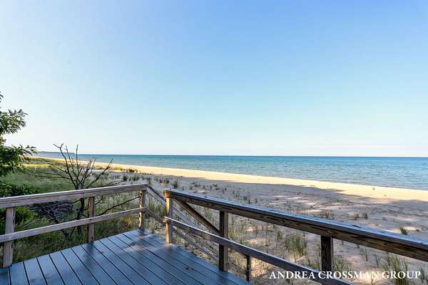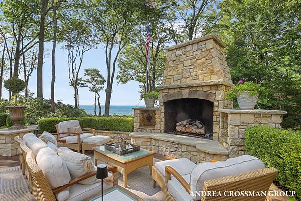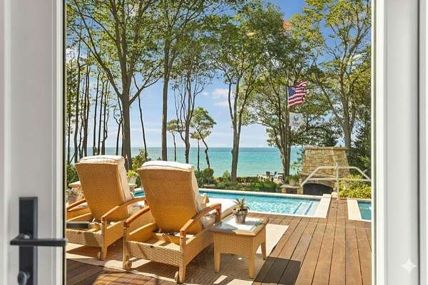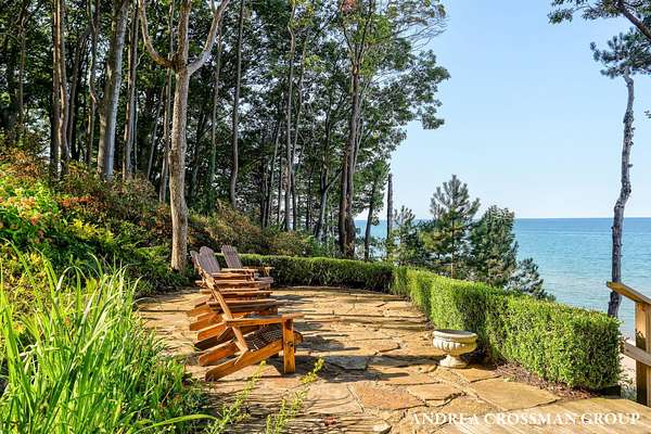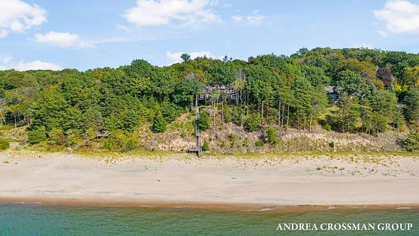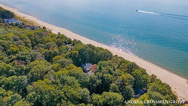 Expansive Lake Michigan estate with 200 feet of private beachfront and nearly 4 acres of rolling woodlands. Stunning lake views frame a property designed for summer enjoyment, featuring multi-level Ironwood decking, a swim spa, Jacuzzi, full outdoor kitchen with al fresco dining, outdoor fireplace, sunset deck, 3 tiered waterfall koi ponds, extensive gardens, a 30' flag pole, and stairs leading to a wide sand beach and swimmable pristine water of Lake Michigan. Entrance includes 200 year old imported French Chateau columns with iron fence and electronic gates. Inside you'll find 7 bedrooms, 7 full baths, and 2 half baths across more than 7,700 finished sq. ft. on three levels. Highlights include primary suites on both the main and upper levels, three indoor fireplaces, a renovated and enlarged chef's kitchen, inlaid hardwood floors on the main level, and elegantly updated baths. Extensive updates include a Slate Roof, Copper Gutters, Swim Spa and Hot Tub Mechanicals, Underdeck Mechanical Room, Two High End Heat Pump Furnaces and Air Conditioners, Front Iron Gate Motors, and more, further elevate this remarkable home. Conveniently located between Saugatuck, Douglas, and Holland, and close to the 1,000-acre Saugatuck Dunes State Park. The newly open floor design offers a panoramic view of Lake Michigan and a great traffic flow, ideal for entertaining. The main level also showcases new oak hardwood floors and a rebuilt staircase that sets the tone for the home's elegant updates. The family room features a new Limestone fireplace surround, custom wood paneling and lighting, while the dining room offers a built-in wet bar. Custom built pantry cabinet. Many of the lakeside windows have been replaced and Pella French doors added allowing natural light to highlight the fully renovated kitchen, which includes a quartzite island and counters, built in Sub-Zero refrigerator and freezer, and a 5-burner, double oven La Cornue range. This expanded kitchen flows seamlessly into the living room with a custom built entertainment system. The primary suite on this level is complete with a gas fireplace, a lakeside sitting room, and a renovated bath featuring quartzite counters, heated floors, a walk-in tiled shower, heated marble tiled flooring, and a walk-in closet. 2 convenient half baths, laundry room, and three-stall heated garage with newly epoxied floors complete the main level. The upper level continues the sense of luxury with a second primary suite offering a fireplace, walk-in with cedar closet, laundry, and a new lakeside Trex deck. The attached bath has been beautifully updated with a soaking tub, walk-in shower with tankless water heater above, and heated marble tiled floors. This floor also provides three additional bedrooms, including a lakeside ensuite, along with a spacious office with balcony, a library with built-in storage, and a full bath. The walkout lower level, with in-floor radiant heat, opens to the outdoors with sliders and includes a large recreation room, exercise area, full bath, and an additional en suite bedroom. A workroom and large storage area provide abundant space for hobbies and organization. Additional items include Four new Fireplace Inserts, Three New Trex Decks, Tankless Hot Water Heater above Primary Shower, Iron Curtain Water Filtration, and Self Watering Flower Pots and Window Boxes. Each of the last two owners have invested over $5 million total in renovations, creating a showcase Lake Michigan estate.