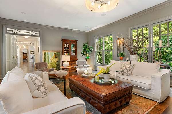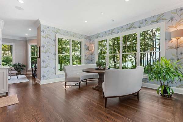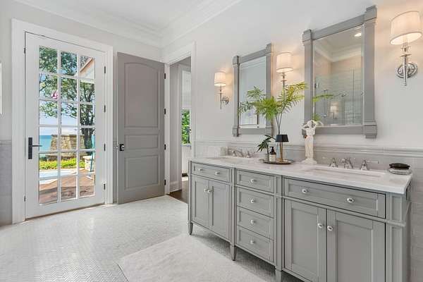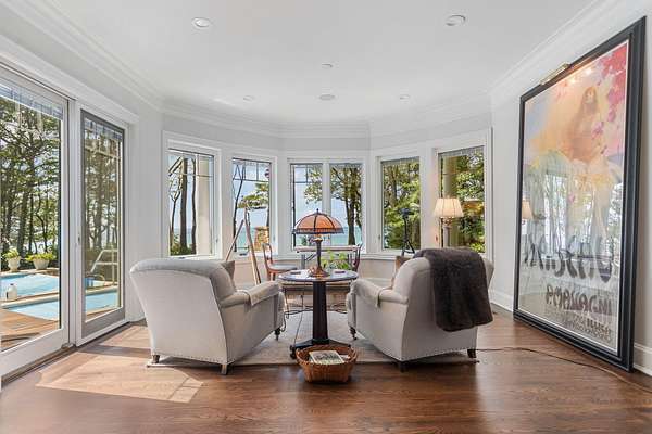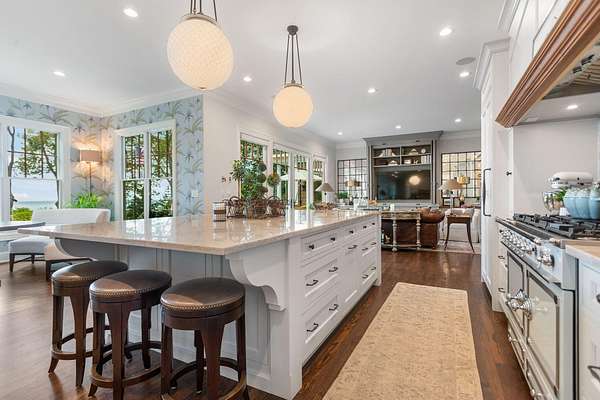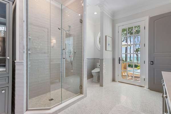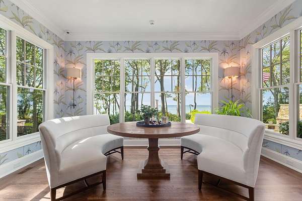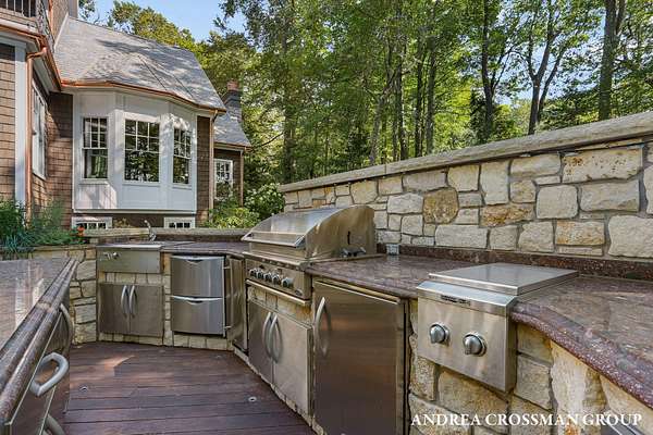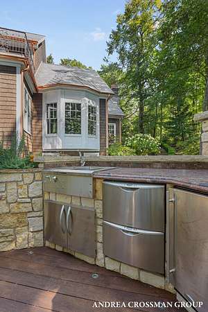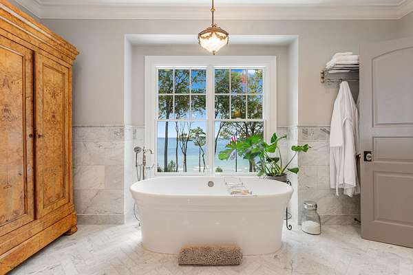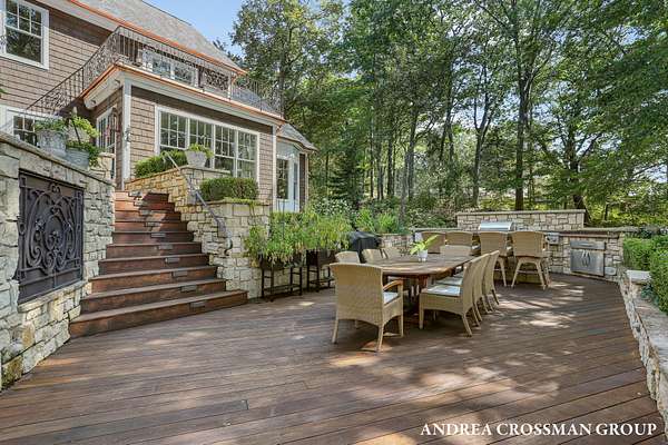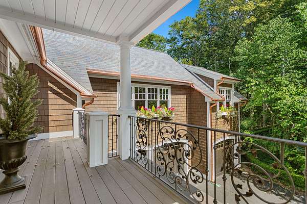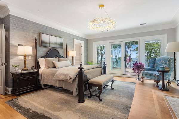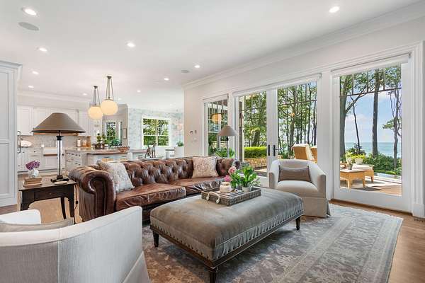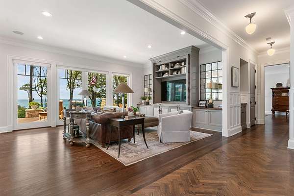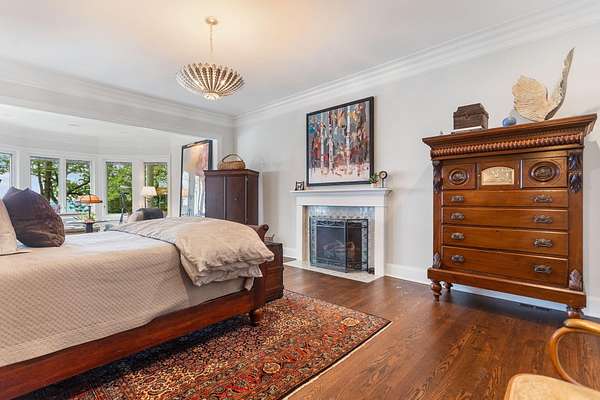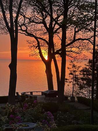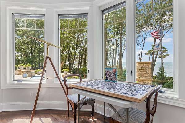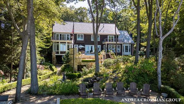 Expansive Lake Michigan estate with 200 feet of private beachfront and nearly 4 acres of rolling woodlands. Stunning lake views frame a property designed for summer enjoyment, featuring multi-level Ironwood decking, a swim spa, Jacuzzi, full outdoor kitchen with al fresco dining, outdoor fireplace, sunset deck, 3 tiered waterfall koi ponds, extensive gardens, a 30' flag pole, and stairs leading to a wide sand beach and swimmable pristine water of Lake Michigan. Entrance includes 200 year old imported French Chateau columns with iron fence and electronic gates. Inside you'll find 7 bedrooms, 7 full baths, and 2 half baths across more than 7,700 finished sq. ft. on three levels. Highlights include primary suites on both the main and upper levels, three indoor fireplaces, a renovated and enlarged chef's kitchen, inlaid hardwood floors on the main level, and elegantly updated baths. Extensive updates include a Slate Roof, Copper Gutters, Swim Spa and Hot Tub Mechanicals, Underdeck Mechanical Room, Two High End Heat Pump Furnaces and Air Conditioners, Front Iron Gate Motors, and more, further elevate this remarkable home. Conveniently located between Saugatuck, Douglas, and Holland, and close to the 1,000-acre Saugatuck Dunes State Park. The newly open floor design offers a panoramic view of Lake Michigan and a great traffic flow, ideal for entertaining. The main level also showcases new oak hardwood floors and a rebuilt staircase that sets the tone for the home's elegant updates. The family room features a new Limestone fireplace surround, custom wood paneling and lighting, while the dining room offers a built-in wet bar. Custom built pantry cabinet. Many of the lakeside windows have been replaced and Pella French doors added allowing natural light to highlight the fully renovated kitchen, which includes a quartzite island and counters, built in Sub-Zero refrigerator and freezer, and a 5-burner, double oven La Cornue range. This expanded kitchen flows seamlessly into the living room with a custom built entertainment system. The primary suite on this level is complete with a gas fireplace, a lakeside sitting room, and a renovated bath featuring quartzite counters, heated floors, a walk-in tiled shower, heated marble tiled flooring, and a walk-in closet. 2 convenient half baths, laundry room, and three-stall heated garage with newly epoxied floors complete the main level. The upper level continues the sense of luxury with a second primary suite offering a fireplace, walk-in with cedar closet, laundry, and a new lakeside Trex deck. The attached bath has been beautifully updated with a soaking tub, walk-in shower with tankless water heater above, and heated marble tiled floors. This floor also provides three additional bedrooms, including a lakeside ensuite, along with a spacious office with balcony, a library with built-in storage, and a full bath. The walkout lower level, with in-floor radiant heat, opens to the outdoors with sliders and includes a large recreation room, exercise area, full bath, and an additional en suite bedroom. A workroom and large storage area provide abundant space for hobbies and organization. Additional items include Four new Fireplace Inserts, Three New Trex Decks, Tankless Hot Water Heater above Primary Shower, Iron Curtain Water Filtration, and Self Watering Flower Pots and Window Boxes. Each of the last two owners have invested over $5 million total in renovations, creating a showcase Lake Michigan estate.