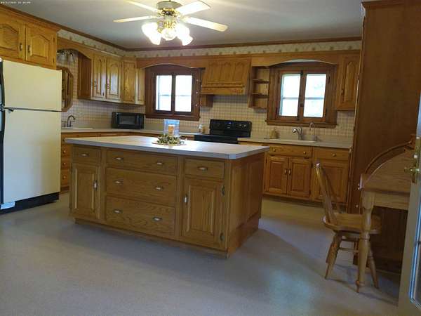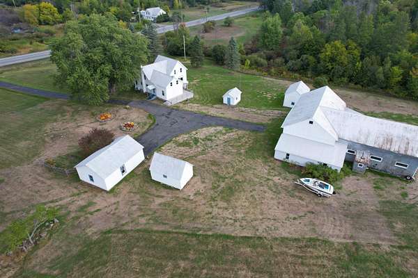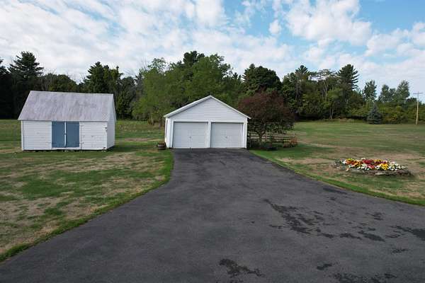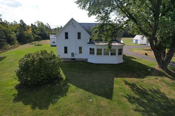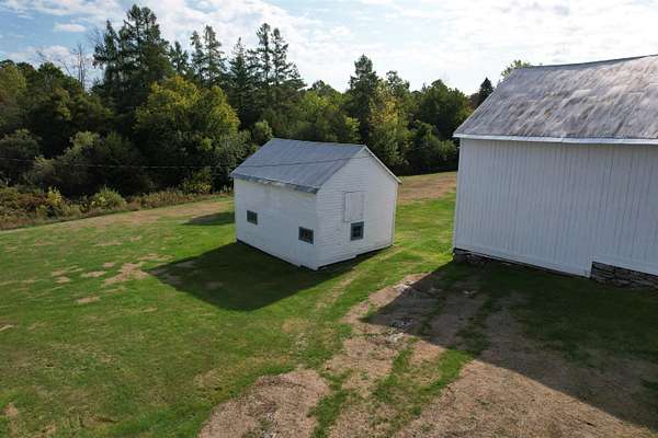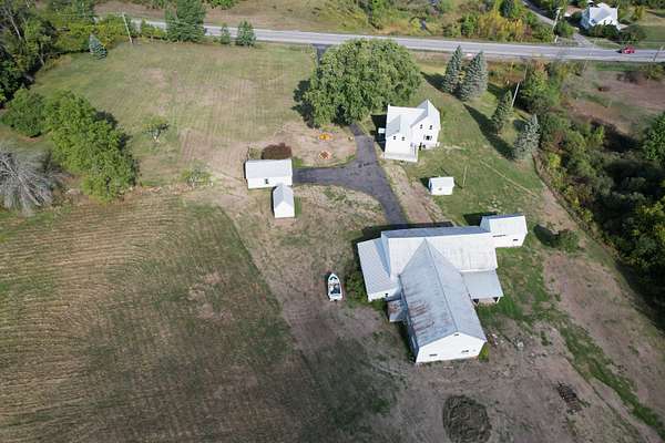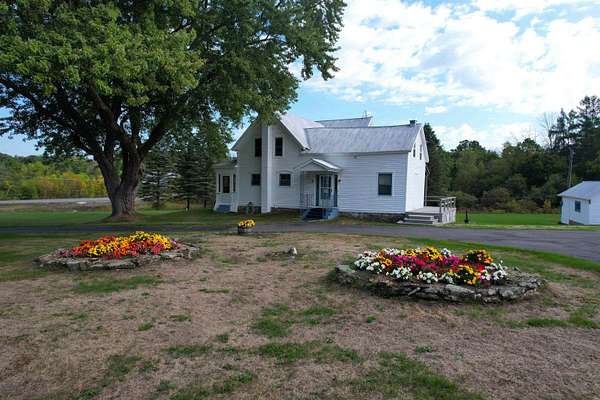 A beautiful farmhouse for a new owner to make memories. A paved driveway leads the way to a modern house and outbuildings found on 15 acres. The spacious kitchen and living room allow much room for gathering and entertaining. The eat-in kitchen features Amish built oak cabinets including a pantry cupboard, a second sink for prep, a large center island, and a brand new dishwasher. A very large living room with original woodwork and molding that has been refinished by a local contractor. An insulated enclosed sun porch is a perfect place to relax and enjoy the views. Also on the first floor are a brand new washer and gas-powered dryer, a full bathroom with a lovely shower and in-floor heat. Three bedrooms with carpeted floors and a full bathroom with a tub/shower complete the second floor. A full basement includes a second set of washer and dryer perfect for work clothes and a cast steel fuel oil boiler for heat and hot water. Propane powers the dryer and Generac. A two-story unfinished space at the back of the house currently used for storage may possibly be able to be finished into a game room, office, apartment, or more. The amazing yard has been lovingly landscaped. The flowers, apple tree, and waterfalls are breathtaking. The well-maintained outbuildings include a detached garage, former milk house, a hen house, and a barn. The barn has electricity and is used for storage and a hobby farm. The back area of the barn has a space for woodworking, a wood stove for heat, and a lean-to off the back. A second floor available for a hay mow. A second drilled well and pump are located in the barn. Property features a third well that is not connected to a hand pump. A survey will be completed before closing to separate the 15 acres from the larger lot. Be sure to check out our virtual tour and schedule a showing to see more!
