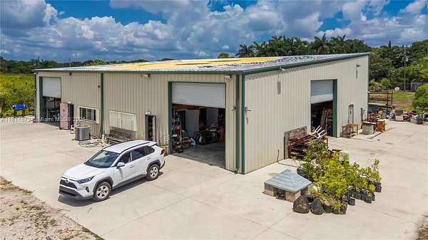 8.9 Acres! Unique property in Davie surrounded by million-dollar homes in a fast-growing, family-friendly area with "A" rated schools. Fronts Flamingo Rd, backs Flamingo Gardens, and borders the gated Ridge at Laurel Oaks. Fully fenced with gated access. Operating tropical fruit grove since 1987 with ~1,000 starfruit trees and other varieties (macadamia, avocado, banana, etc.). Features include a 5" well, advanced irrigation, very low ag taxes, and a 4,800 sf insulated steel building (Cat 5+ rated) with 1,140 sf A/C space, 2 kitchens, 2 baths, and 3 offices. Industrial features: mezzanine, 800A power, racking, security system. Includes prepped 1-acre homesite for a 4,000 sf home. Ideal for family compound, agribusiness, or investment. Agriculturally assessed, very low taxes.