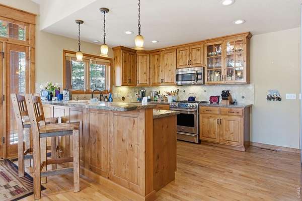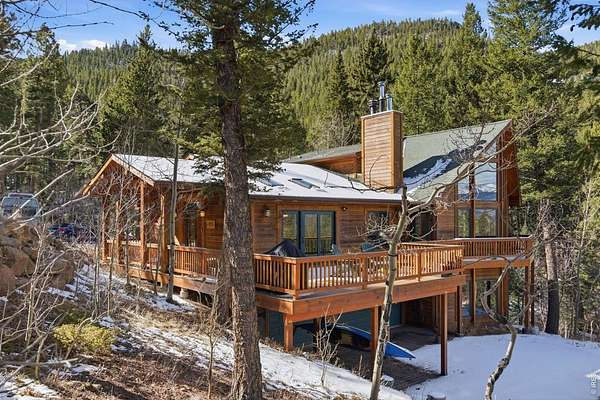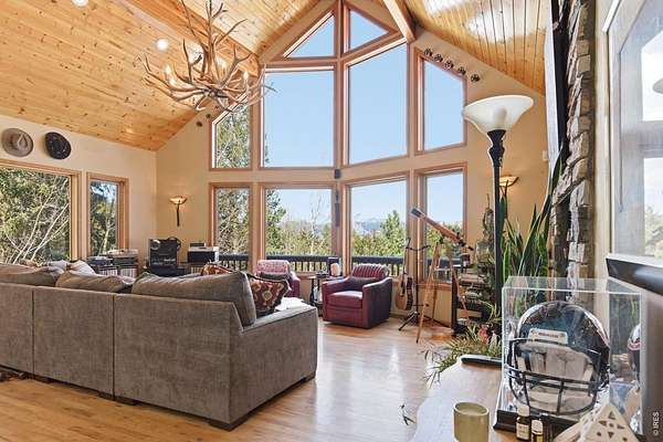 You know the feeling. The moment you arrive in the mountains, take a deep breath, and the pace of life changes. The breeze moves through the pines. Wildlife reveal themselves while the mountains stand proudly on the horizon. If you've been searching for a place where people gather, stories unfold, and the outdoors becomes part of everyday life, this luxury mountain home was built for you. Set on secluded acreage in the trees with striking views of Ypsilon Peak and the Mummy Range, this classic cedar-sided prow-front home captures the spirit of Estes Park living. A dramatic wall of windows pulls the mountains indoors, filling the great room with light. The layout was designed for connection. The gourmet kitchen flows easily into open living and dining spaces where long dinners, laughter, and shared stories come naturally. Multiple fireplaces add warmth and atmosphere, while wide decks and outdoor spaces invite you to step outside and stay awhile. Morning coffee might happen on the deck while the forest wakes up around you. Later, you might soak in the private hot tub tucked among the trees, replaying the day's hike in Rocky Mountain National Park or a 4x4 adventure in the nearby National Forest trails just down the road. Each bedroom offers its own private space, including a luxurious primary suite with a spa-inspired bath, walk-in closet, and private deck retreat. A large bonus room downstairs adds flexibility for a home theater, fitness area, creative studio, or the ultimate hangout space. Storage and garage space are abundant with room for motorcycles, off-road vehicles, snowshoes, and other toys. This is the kind of property people hold onto for years. A place where holidays feel bigger, ordinary weekends turn into adventures, and the mountains quietly become part of your story. This will be the gathering place everyone wants to return to. If creating a mountain legacy matters to you, walking into this home might be the first steps toward that reality.