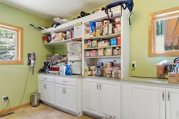 Bay or Bow Window, Beamed Ceilings, Cathedral Ceiling(s), Natural Woodwork, Open Floorplan, Pantry, Sauna, Separate Dining Room, Skylights, Walk-In Closet(s), Washer/Dryer Hookup, Wood Windows