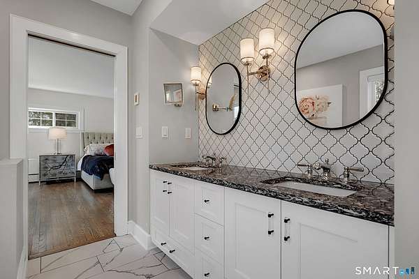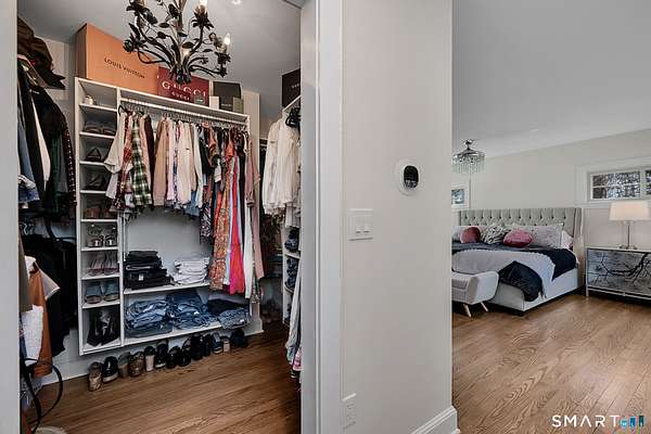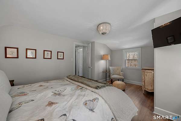 Charm abounds in this remodeled classic cape with 2 car garage, central air, and massive 1st floor master suite! Remodeled eat-in-kitchen with granite countertops, stainless steel appliances, tile backsplash and breakfast bar. Living room with fireplace and hardwood floors. Dining room with hardwood floors. Luxurious master suite with built-ins, walk-in california closet, and large remodeled master bath with quartz countertops, double sinks, soaking tub, heated floor and tile surround shower. main level laundry room. Character driven powder room. Upstairs 2nd bedroom with hardwood floors. Full bath with subway tile surround shower and tile floor. Additional room with hardwood floors. Newer composite deck overlooks a country backyard. This home has charm and modern amenities. It will not last! Town Card has 2 Bedrooms and 1.1 baths. Home has 2.1 baths and additional rooms.