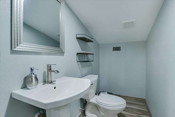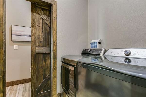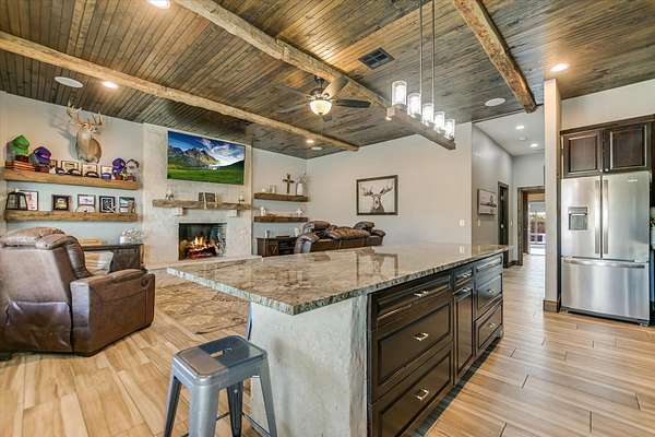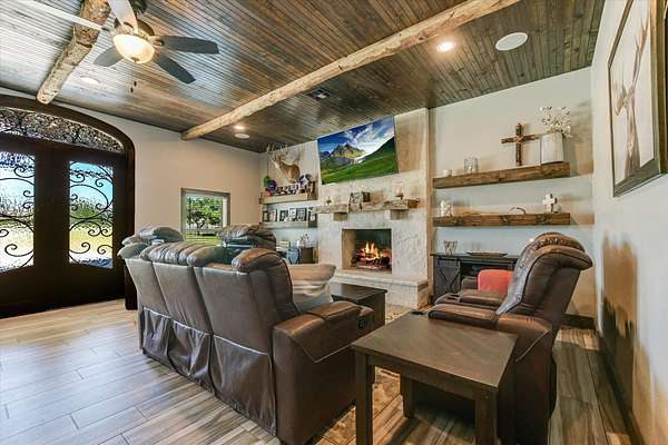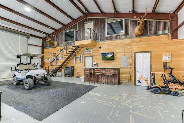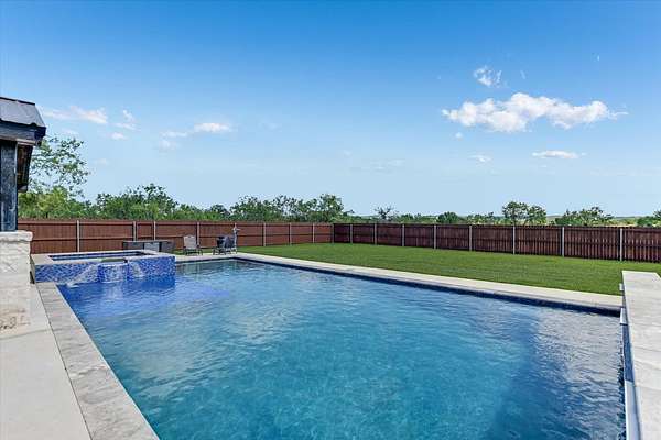 Welcome to your dream retreat in the desirable Backbone Valley! Situated on 3.5 Ag-exempt acres, this impressive barndominium offers the perfect blend of country charm and modern convenience -- just a short drive to Marble Falls. This thoughtfully designed 3-bedroom, 3.5-bathroom home features an open-concept layout with a spacious eat-in kitchen that flows seamlessly into the cozy living room, complete with a wood-burning fireplace and custom built-ins. Each bedroom on the main level enjoys its own private full bathroom, offering comfort and privacy for all. The primary suite boasts vaulted ceilings, a long walk-in closet, and serene views of the pool area. Upstairs, you'll find a large game room and convenient half bath -- perfect for entertaining or relaxing with family and friends. Step outside to your own private oasis: a HUGE heated in-ground pool and spa surrounded by a wooden privacy fence. The full property is enclosed with durable pipe fencing for peace of mind and added security. Connected through the laundry room is a show-stopping 45'x50' insulated metal shop featuring four full-length bay doors, a built-in bar top, and a dedicated half bathroom that also serves as a pool bath. It's a mechanic's dream and entertainer's paradise all in one. The oversized lean-to is ideal for storing RVs, boats, and more. The exterior is a blend of durability and style, with a fully insulated metal structure wrapped in beautiful limestone for classic Hill Country appeal. Rural luxury and functionality in one!