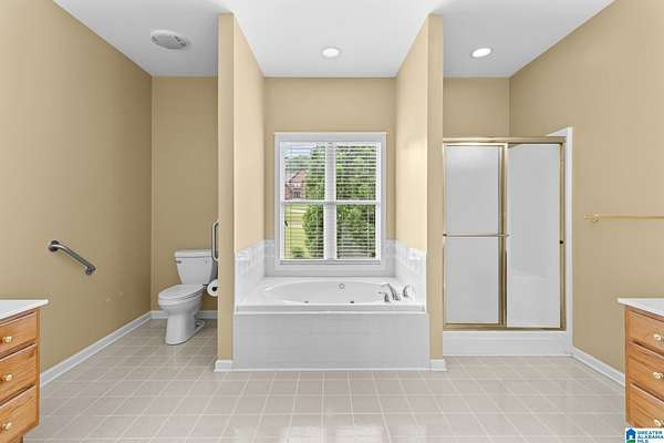 - Garden Tub, Jetted Tub, Linen Closet, Separate Shower, Tub/Shower Combo, Walk-In Closets
