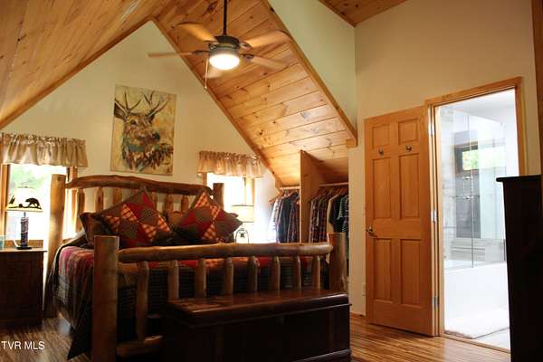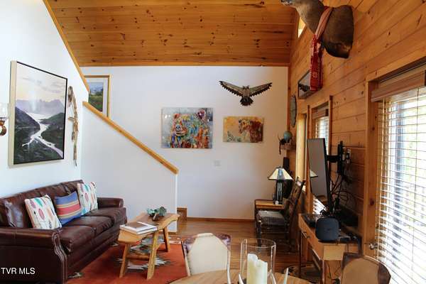 South on Hwy 19E towards Roan Mtn. RT on Hwy 143 towards Roan Mtn State Park. In 2.38 mi Left on Heaton Creek Rd. Travel 2.11 mi & turn RT on McKinney Ln. In 0.56 mi, McKinney Ln becomes Roan Springs Ln. Enter Eagle Ridge Estates, keep RT at fork see Eagle Ridge road sign on the RT side. home on Rt