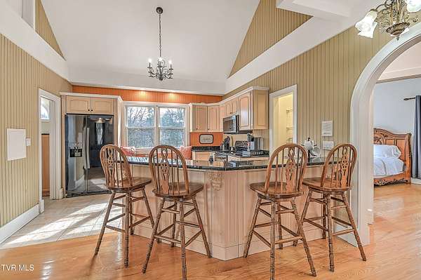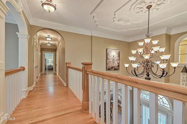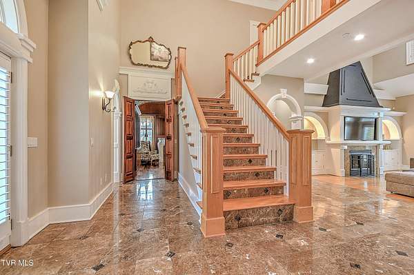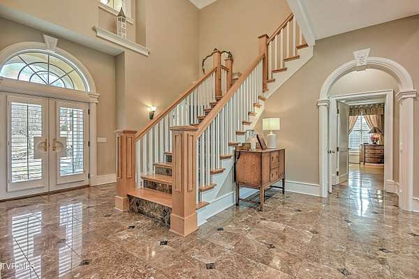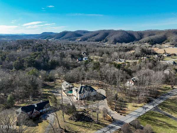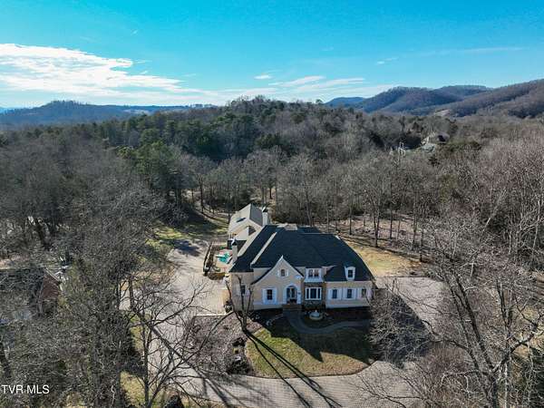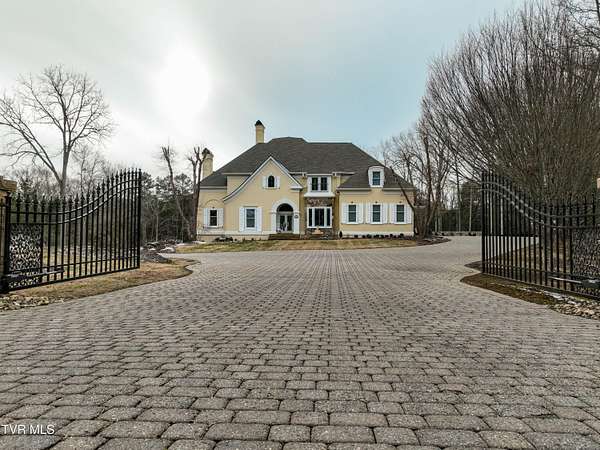 Looking for a custom built, French Country estate in the heart of the Tri-Cities? Don't miss this one! Nestled behind a gated entrance on nearly 3 acres, this exceptional property is located within the prestigious Fairway Estates community alongside Tri-Cities Golf Course. The arrival sets the tone with a brick paver driveway, established landscaping, and exterior lighting that highlights the home's timeless curb appeal. The main residence offers over 7,700 square feet of thoughtfully designed living space with 5 bedrooms, 5 full baths, and 2 half baths. A beautifully appointed pool and guest house adds 3 additional bedrooms and 1 full bath, bringing the total finished square footage to over 9,100 square feet. Inside, the home showcases exceptional craftsmanship throughout, including custom millwork, stone accents, arched openings, plantation shutters, skylights, and multiple fireplaces. Ashe hardwood floors-harvested directly from the property-run through much of the main level, while the marble foyer and staircase risers create a striking first impression. The main living areas are filled with natural light and anchored by a dramatic floor-to-ceiling fireplace and a wall of windows overlooking the resort-style pool. The gourmet kitchen features abundant custom cabinetry, granite countertops, fully loaded appliance package, and a butler's pantry, flowing seamlessly into a comfortable keeping room designed for everyday living and entertaining! The main-level primary suite is privately positioned and offers two walk-in closets, a spa-like bath with whirlpool tub and tiled shower, and a dedicated office with custom built-ins and a coved ceiling. Designed for both luxury and comfort, this home features a private elevator servicing all levels-providing effortless access from the finished walk-out lower level to the upper floors. The lower level offers flexible space ideal for a MIL quarters, media room, fitness area, or additional living space, complete with tile flooring and a full bath. Upstairs includes three additional bedrooms with ensuite baths, two bonus rooms, and generous amounts of storage. Offering expansive outdoor living, the property delivers a true backyard oasis complete with a custom pool, covered patio, outdoor kitchen, and guest house ideal for hosting. Five garage bays and over 2,800 square feet of unfinished space provide ample room for vehicles, storage, or future expansion. Enjoy total privacy in a park-like setting with a small pond and regular wildlife sightings, all while being just minutes from Bristol, Johnson City, and Kingsport. Homes of this caliber, quality, and convenience rarely come available and will not last long priced to sell at $1.85M. Call today to schedule your appointment! All information contained herein is gathered from third party sources, tax records, homeowner and is subject to buyers and buyers agent verification.