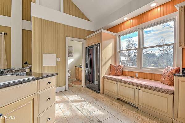 - Built-In Features, Cedar Closet(s), Eat-In Kitchen, Entrance Foyer, Granite Counters, Kitchen Island, Pantry, Primary Downstairs, Soaking Tub, Utility Sink, Walk-In Closet(s)