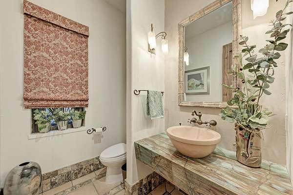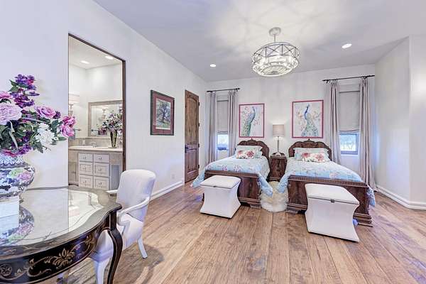 Fully Furnished 4BR/4BA Custom Estate on 4.3+ Acres in Gated Equestrian Community - Membership waiver to Horseshoe Bay Resort, featuring four championship golf courses, premier amenities, and nearby lakes for boating and recreation. Beautifully appointed custom home in prestigious Horseshoe Bay, set on 4.3+ private acres with rolling terrain and white fencing. Enjoy a sparkling pool with waterfall, meditation garden, and access to neighborhood horse trails. Bay Country is a recognized bird sanctuary and may qualify for ag exemption on unimproved acreage. Walls of windows capture scenic views and fill the home with natural light. The gourmet kitchen features Bentwood cabinetry, gas range, cabinet-front Sub-Zero refrigerator, and island drawers. Hand-scraped hickory floors, antique French barn pavers, and custom Santa Fe doors add warmth and character. Flexible floor plan includes formal living and dining, family room, study, game room with half bath, and separate guest quarters with kitchenette and private entrance. The primary suite offers a balcony, fireplace, dual vanities, soaking tub, walk-in shower, and cedar closets. 3-acre minimum lots create a private, small-community feel with space for horses. Owner is a licensed Texas Realtor.